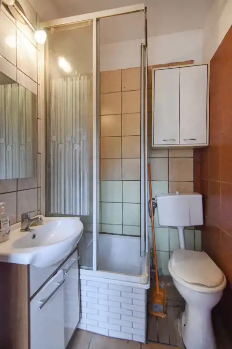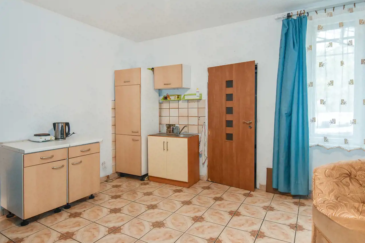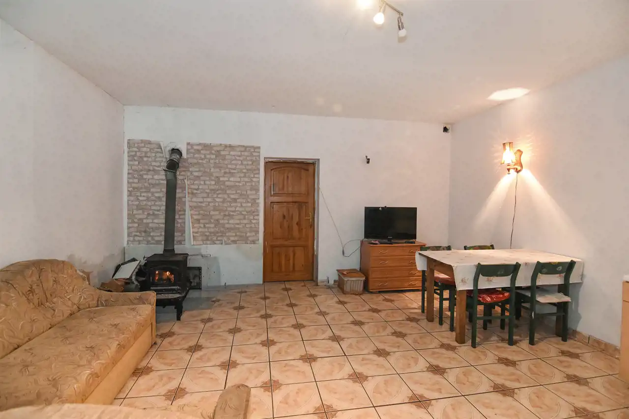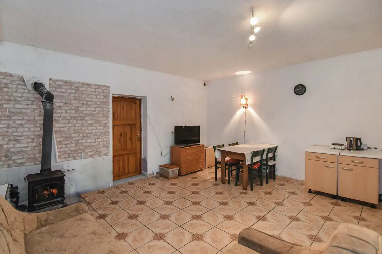 Mieszkanie jest do remontu ale ma spory potencjał. Zaopatrzone jest w wodę, prąd i szambo. Obecnie użytkowane było głównie latem i ogrzewane kozą. Zimą włączane jest na minimalną temperaturę ogrzewanie elektryczne.