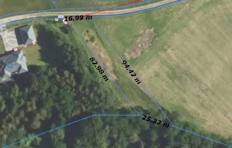 Działka ma kształt zbliżony do podłużnego równoległoboku o wymiarach ok. 17 m x 94 m x 25 m x 83 m.