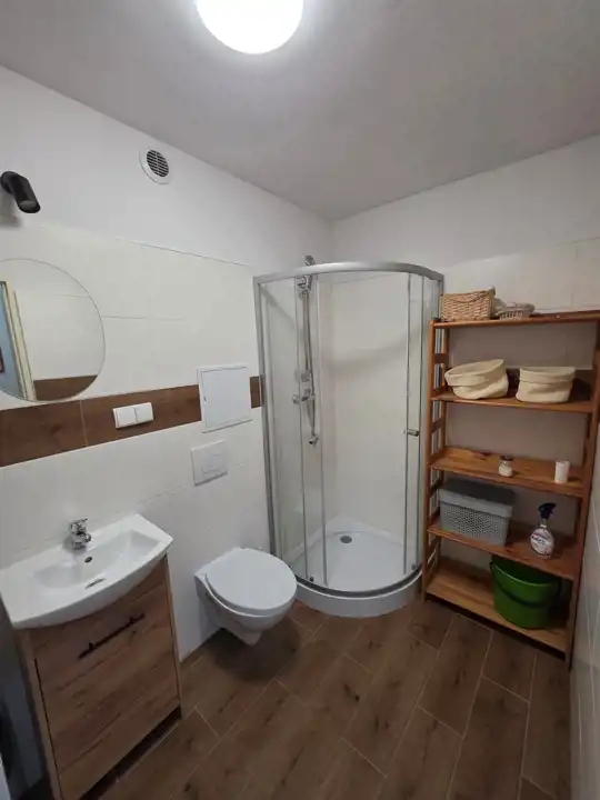 Łazienka przeszła kapitalny remont i została wykończona na nowoczesny styl.