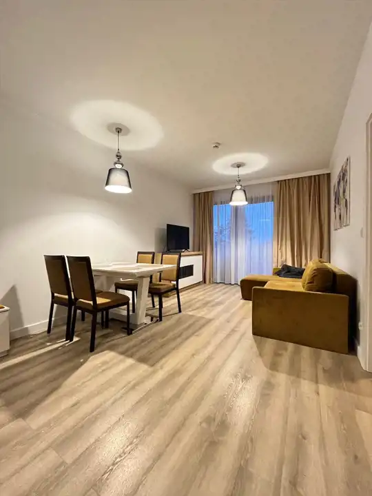 Apartament został zaprojektowany z myślą o komforcie i funkcjonalności. Składa się z jasnego salonu z aneksem kuchennym, oddzielnej sypialni oraz łazienki. Wnętrze jest w pełni umeblowane i wyposażone w niezbędny sprzęt AGD, co pozwala na natychmiastowe użytkowanie bez dodatkowych nakładów finansowych.