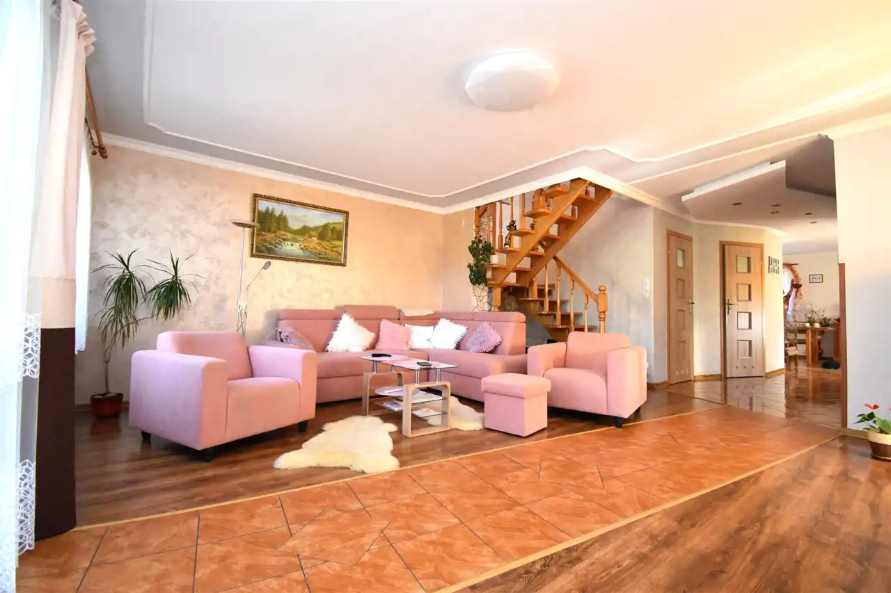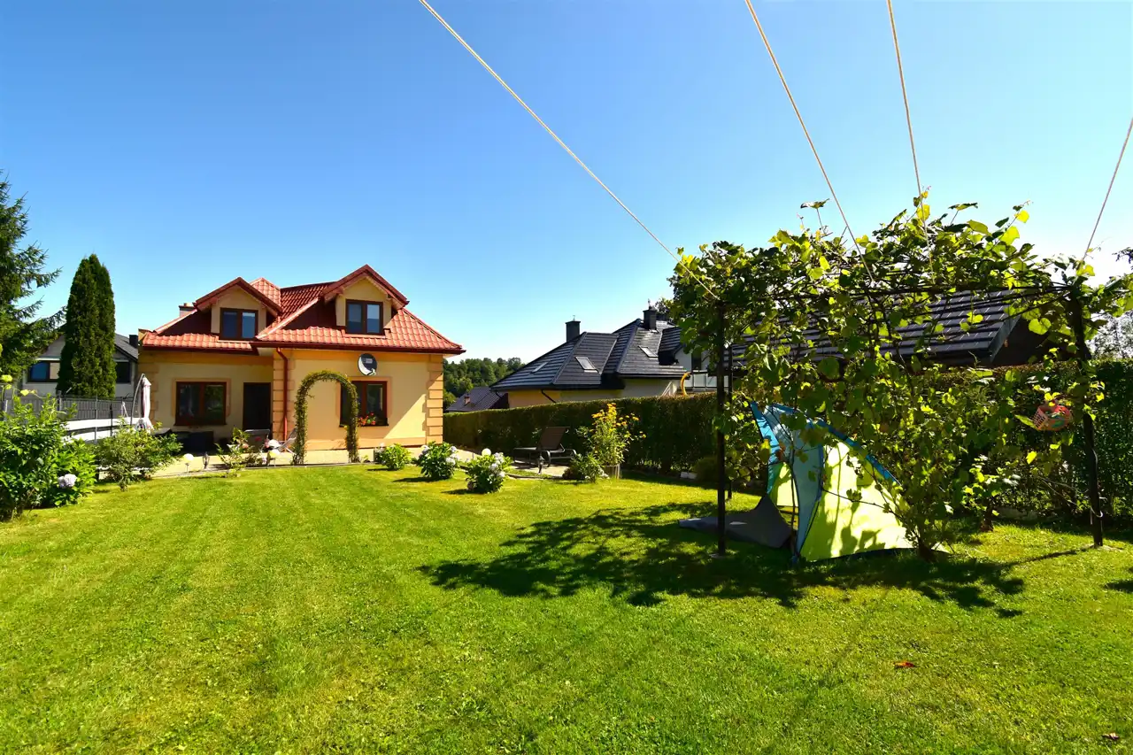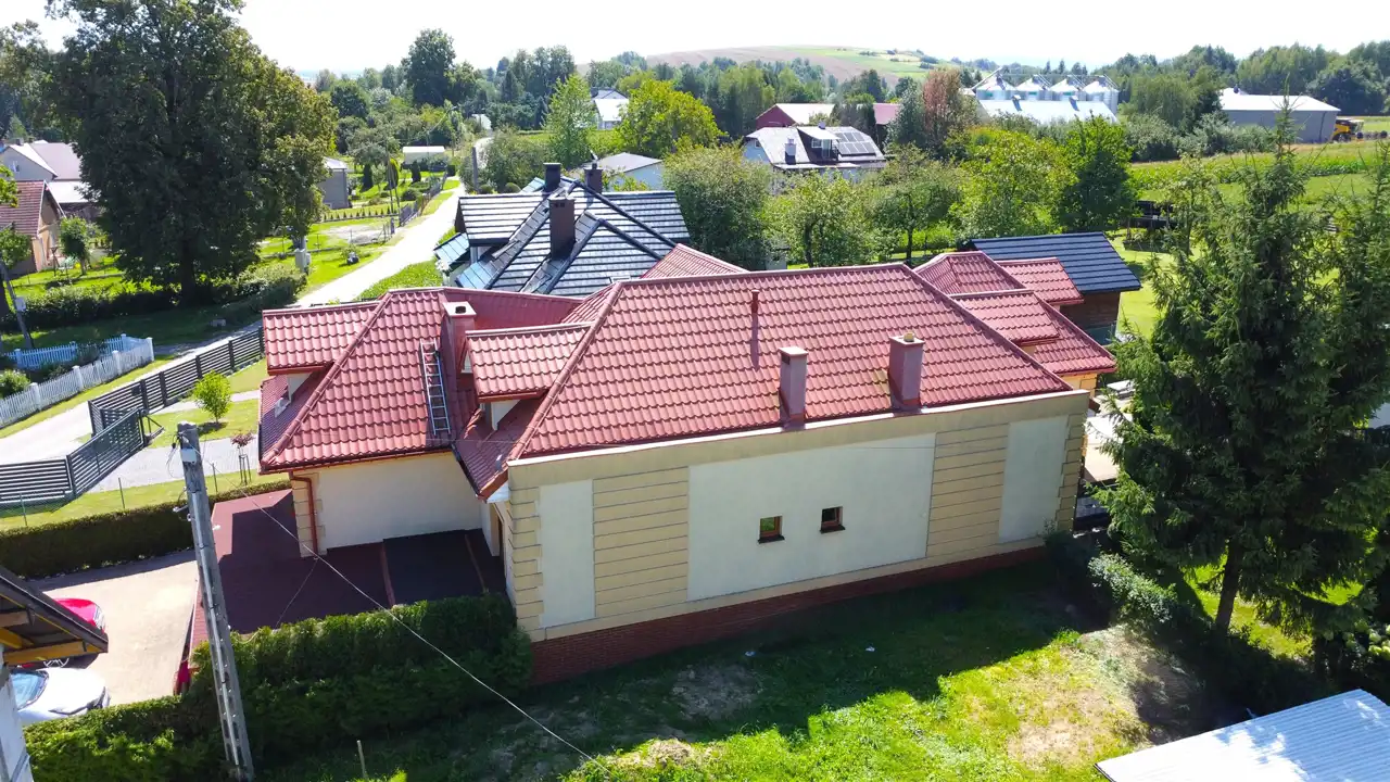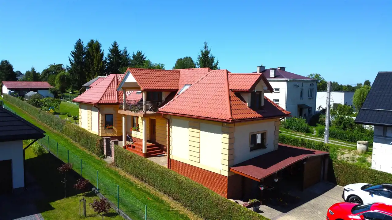 Budynek mieszkalny, dwukondygnacyjny (parter i poddasze mieszkalne), połączony z garażem za pomocą zadaszonej wiaty gospodarczej, wybudowany w latach 2009-2010. Staranność wykończenia i jakość użytych materiałów przekłada się na funkcjonalność, komfort i niepowtarzalny klimat prezentowanej nieruchomości. Kolejnym atutem jest pięknie zagospodarowany ogród, urządzony z niezwykłą dbałością o każdy detal. Imponujące nasadzenia, wydzielona strefa wypoczynkowa, elegancki taras to idealne miejsce na odpoczynek i spędzanie wolnego czasu.