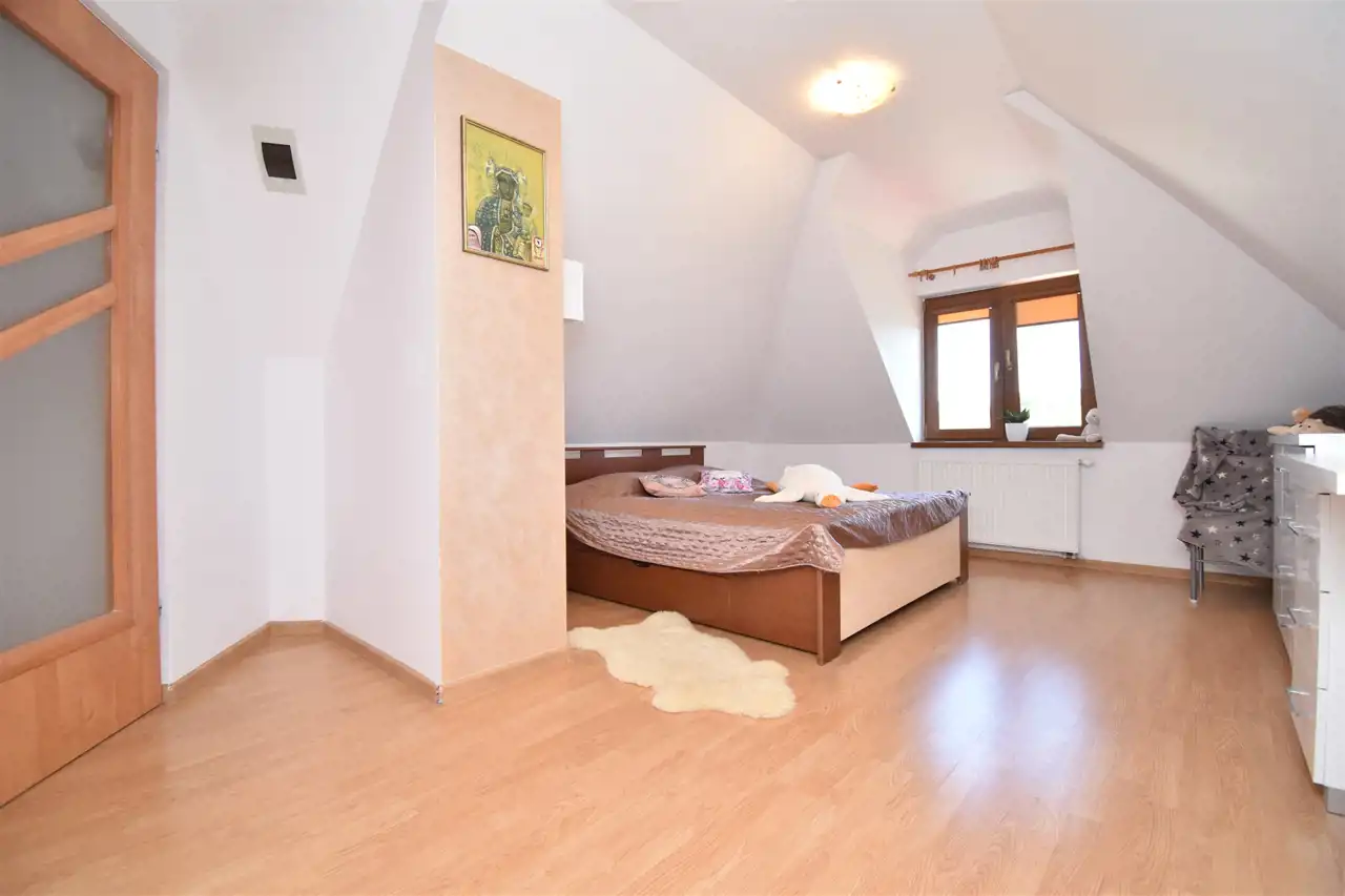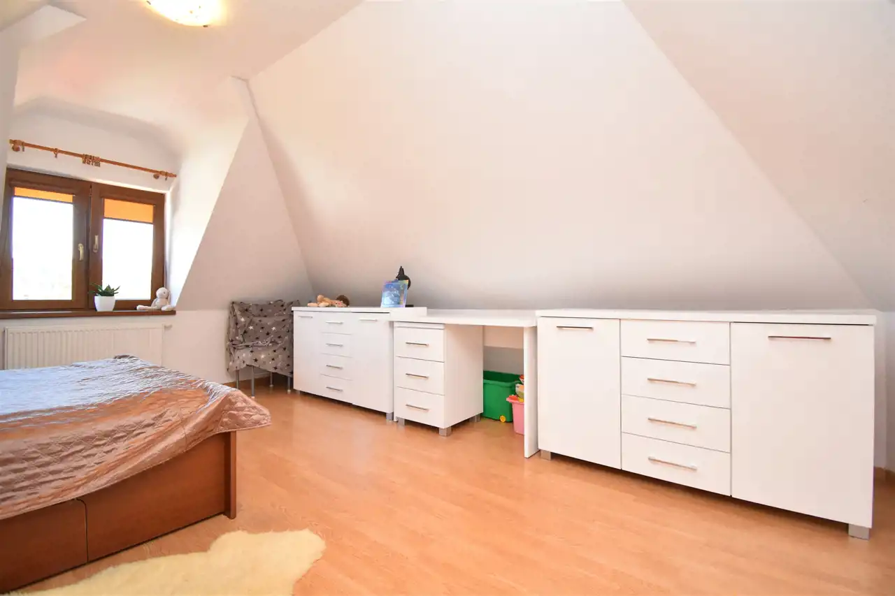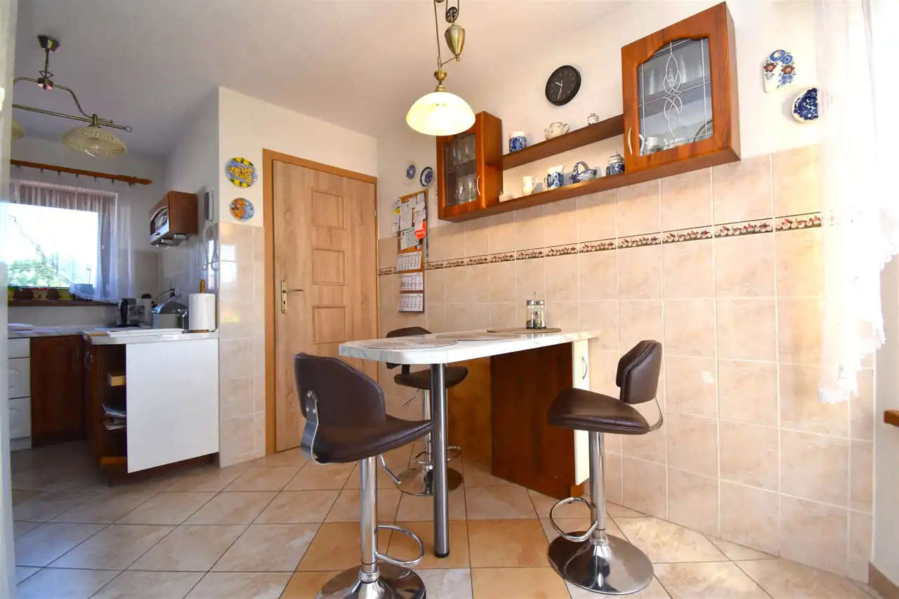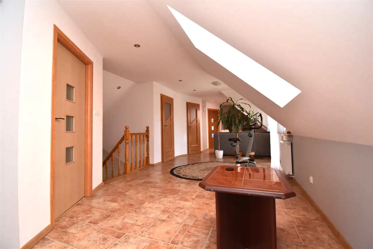 Budynek mieszkalny, dwukondygnacyjny (parter i poddasze mieszkalne), połączony z garażem za pomocą zadaszonej wiaty gospodarczej, wybudowany w latach 2009-2010. Staranność wykończenia i jakość użytych materiałów przekłada się na funkcjonalność, komfort i niepowtarzalny klimat prezentowanej nieruchomości. Kolejnym atutem jest pięknie zagospodarowany ogród, urządzony z niezwykłą dbałością o każdy detal. Imponujące nasadzenia, wydzielona strefa wypoczynkowa, elegancki taras to idealne miejsce na odpoczynek i spędzanie wolnego czasu.