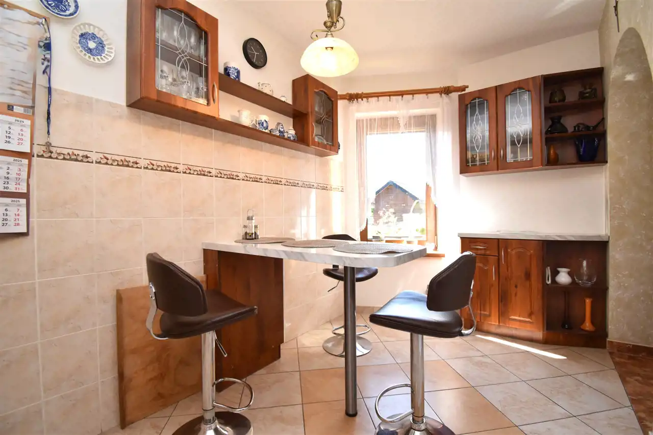 - wysoki standard wykończenia (drewniane podłogi, stolarka okienna, drewniane meble)