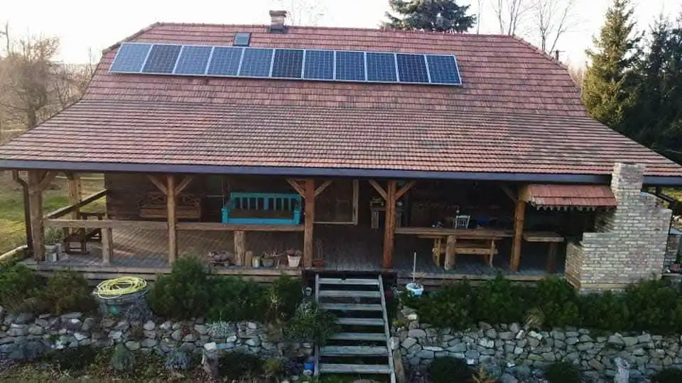 - dach szczelny, pokryty odczyszczoną i zaimpregnowaną blachodachówką na którym znajduje się 11 paneli fotowoltaicznych (pow. 220kW);