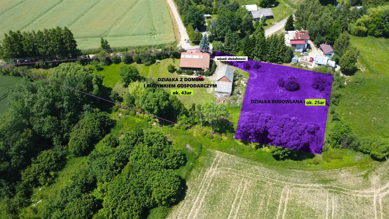 W naszej ofercie posiadamy również na sprzedaż działkę budowlaną o powierzchni ok. 25 arów wchodzącą w skład powyższej nieruchomości - działka jest w trakcie podziału geodezyjnego, którą będzie możliwość zakupić oddzielnie.