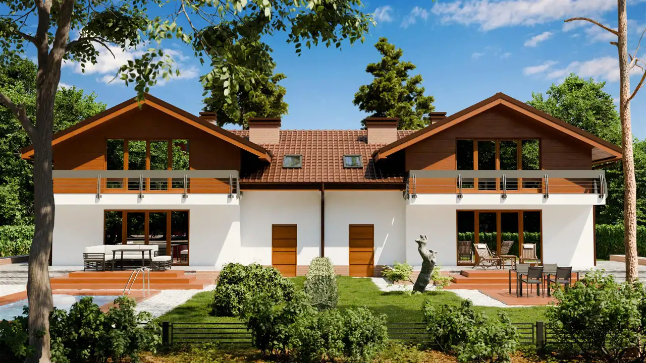 Domy budowane są z dbałością i starannością o detale, przy użyciu materiałów najwyższej jakości.