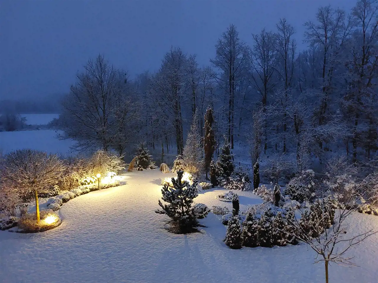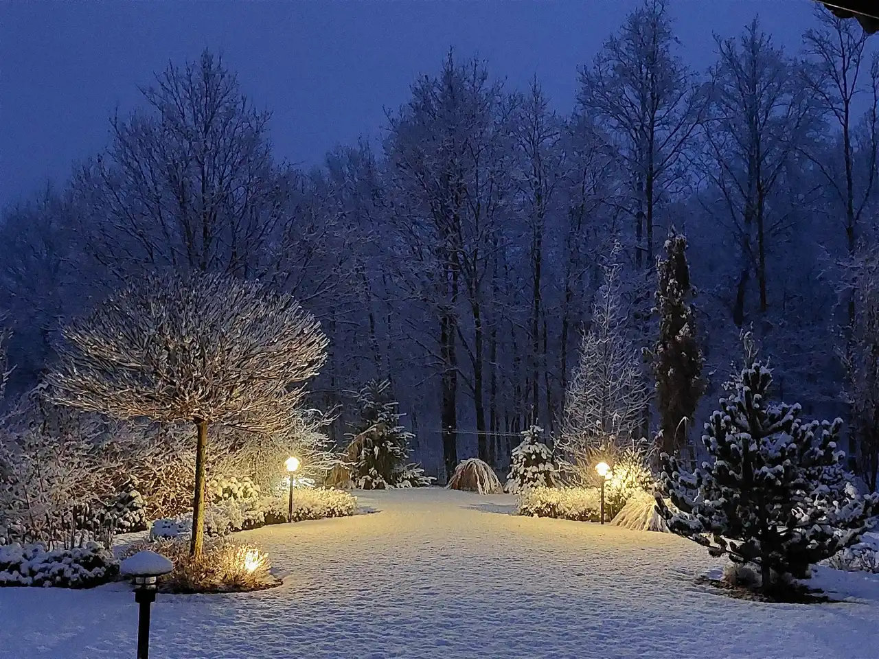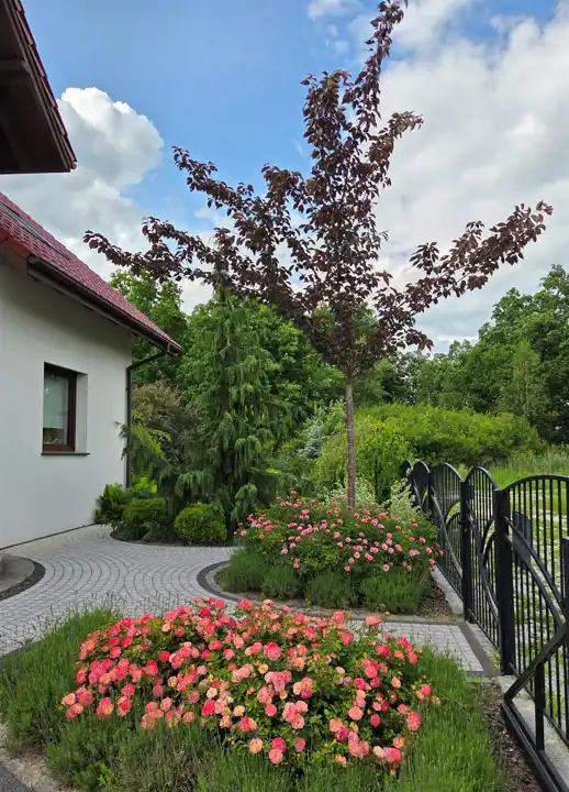 Działka o powierzchni 1239 m² została starannie zaprojektowana i utrzymana w idealnym stanie. Znajdują się tu liczne nasadzenia drzew, krzewów i kwiatów, a także wydzielone miejsce na ognisko lub grilla oraz przestrzeń pod basen ogrodowy.