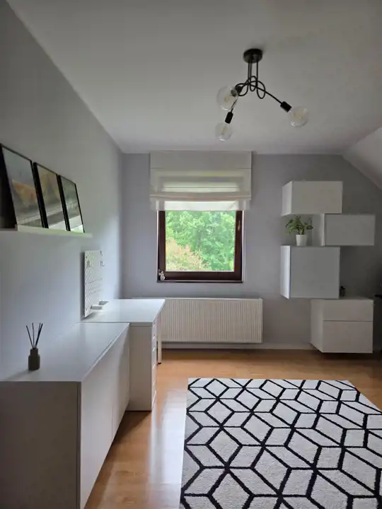 Ten dom to doskonała oferta dla rodzin poszukujących własnego miejsca z dala od miejskiego zgiełku, ale z komfortowym dojazdem do usług, szkół i komunikacji. Również dla osób pracujących zdalnie — przestrzeń i spokój umożliwiają stworzenie domowego biura z widokiem na zieleń.