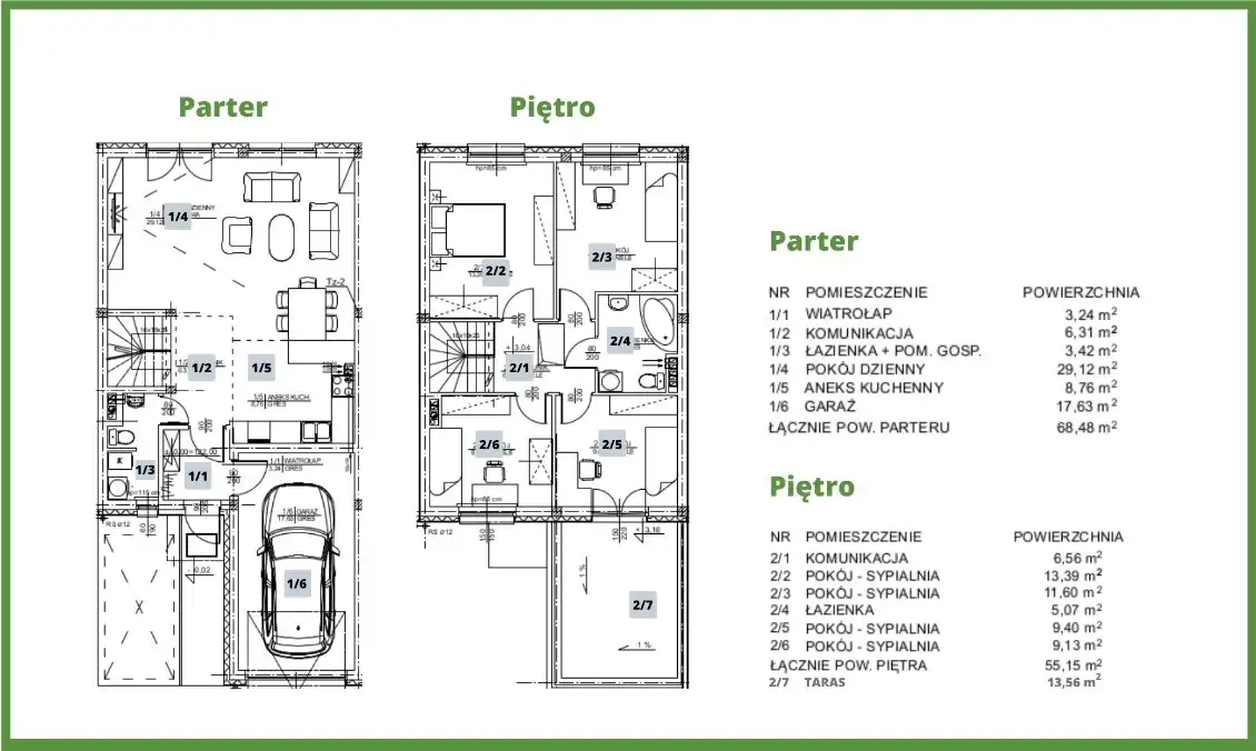 Nowe osiedle otoczone enklawą terenów zielonych, tuż przy Lesie. Jest idealnym miejscem dla osób ceniących sobie spokój, prywatność oraz bezpieczeństwo. Lokalizacja osiedla, sprzyja spacerom i aktywnej formie spędzania wolnego czasu. Domy są niezwykle funkcjonalne, a poddasze daje możliwość stworzenia komfortowej przestrzeni do pracy.Każdy dom to 2 piętra dopasowane do Twoich potrzeb.