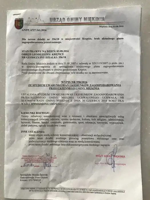 W studium działka przeznaczona pod zabudowę mieszkaniową lub usługową- nie uciążliwą.