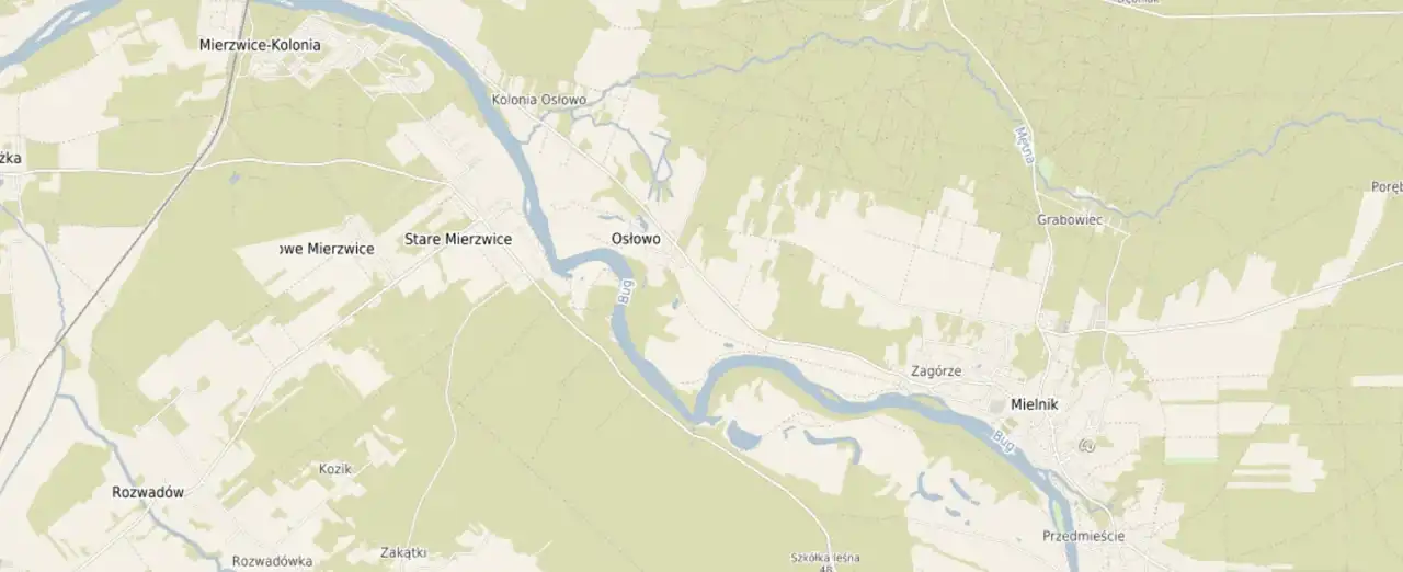 Działka położona w odległości około 800m2 od rzeki Bug. W pobliżu liczne atrakcje turystyczne gminy Mielnik.