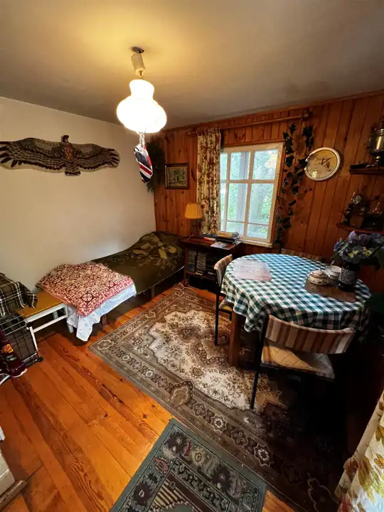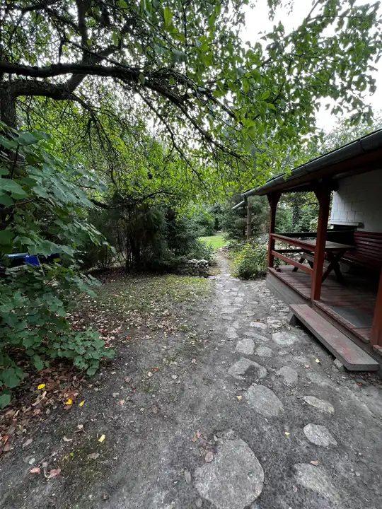 Siedlisko posiada dużo skalniaków wyłożone kamieniem dróżki, studnię