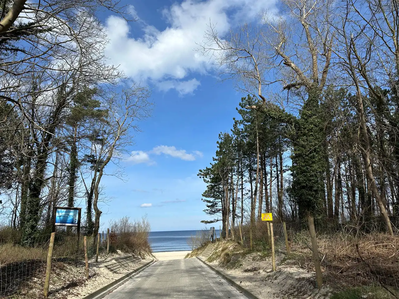 W pobliżu sklepy i gastronomia, do plaży w linii prostej ok. 900m.