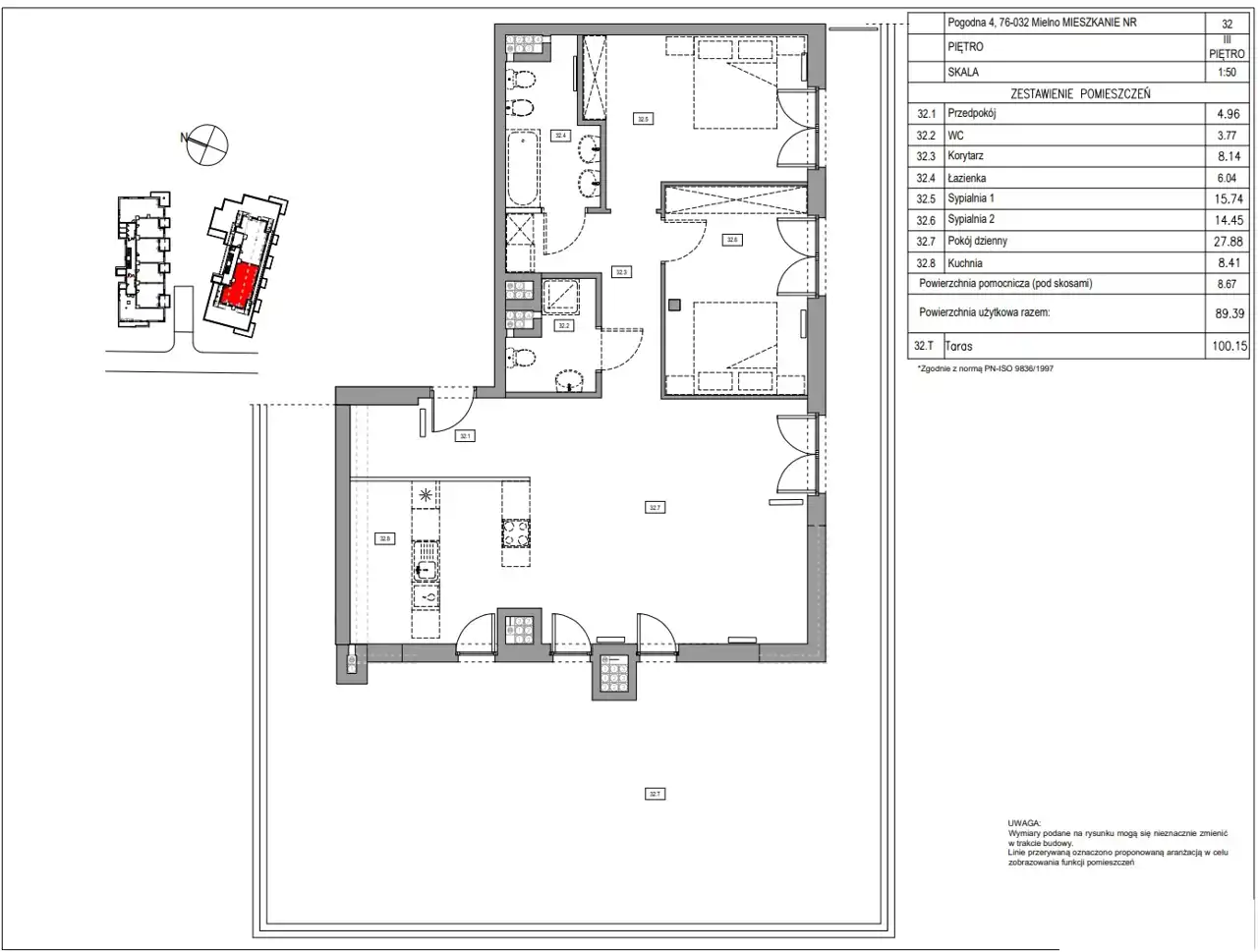 - Charakterystyka mieszkania 89.39 m2, 3 pokoje
