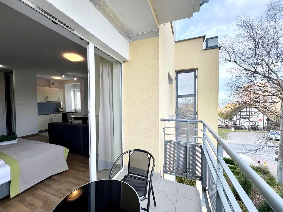 W naszej ofercie posiadamy północno-wschodni narożny apartament o powierzchni 33,75m2 z bocznym widokiem na morze z balkonu i frontowym widokiem z aneksu kuchennego. Lokal składa się z 1 pokoju z aneksem kuchennym i łazienką oraz balkonem, jest w pełni wyposażony gotowy do wprowadzenia.