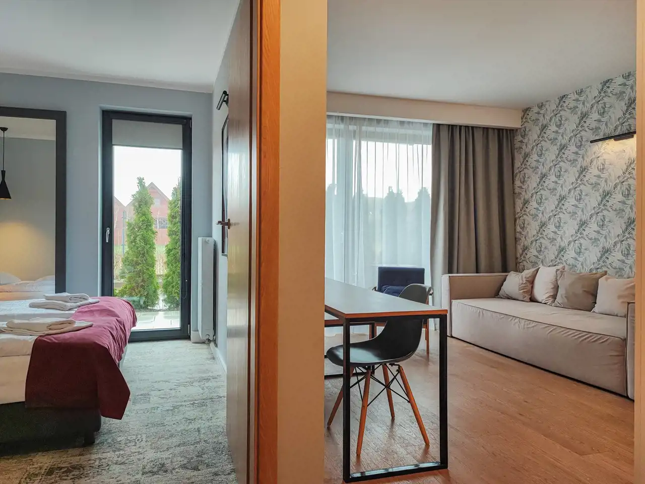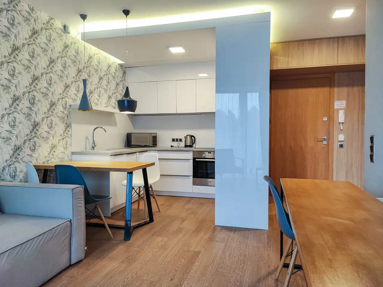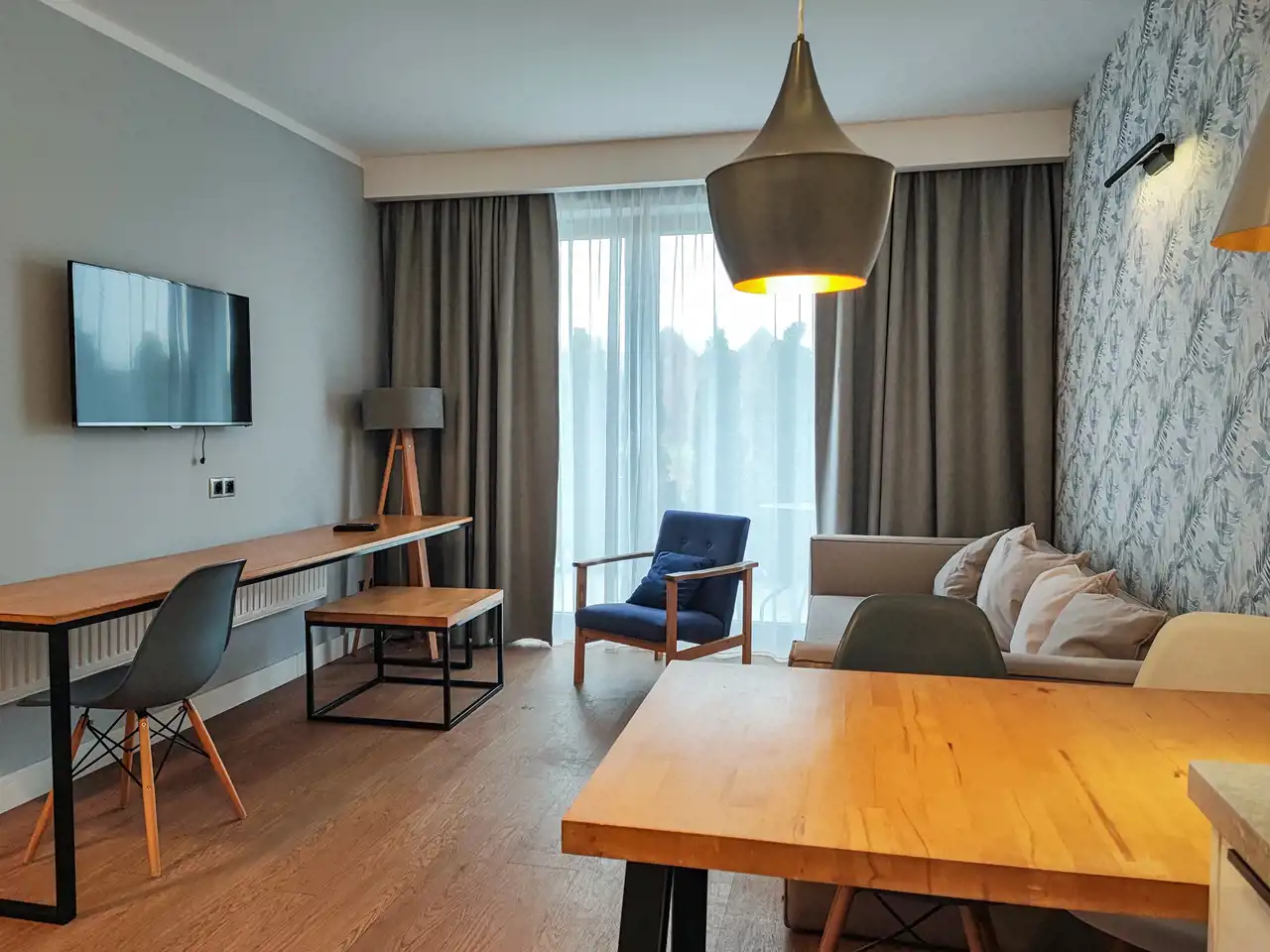 Polecam Państwu rewelacyjnie zlokalizowany 2-pokojowy apartament. Kompleks, który jest połaczeniem apartamentów na wynajem, hotelu i SPA, wybudowany został przy nadmorskim pasie lasu, zaledwie 250 metrów od plaży.
