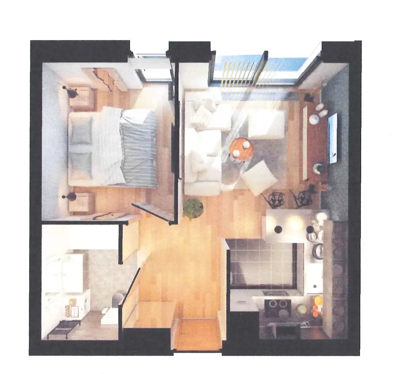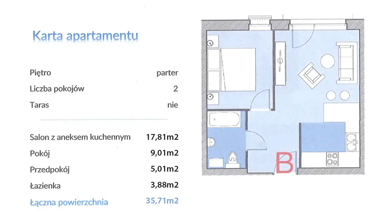 - Charakterystyka mieszkania 35.71 m2, 2 pokoje