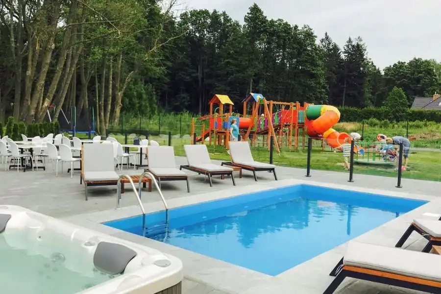 Posiada basen, restaurację, parking i duży plac zabaw. Basen i strefa SPA są dostępne dla włascicieli apartamentów.
