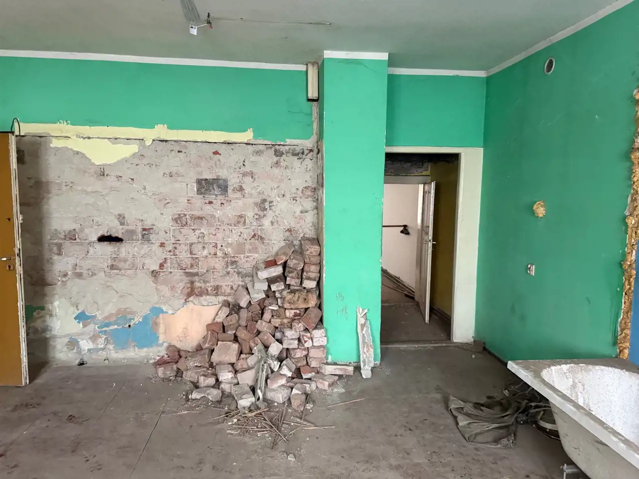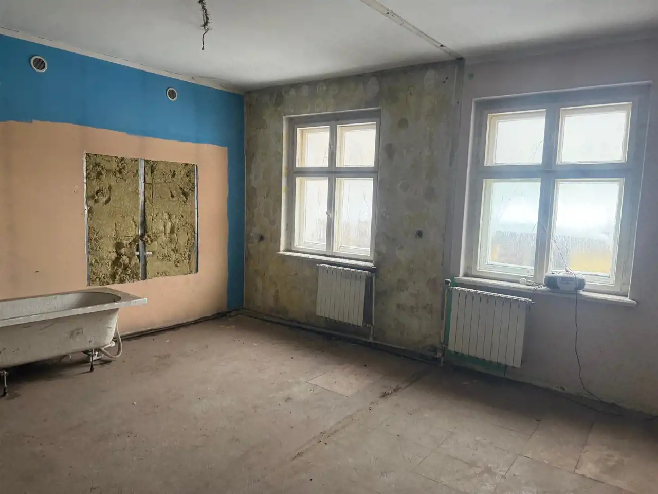 Nieruchomość przeznaczona do kompletnej termo - modernizacji. Prace związane z rozbiórką niektórych ścianek wewnętrznych i oczyszczenie nieruchomości zostały wykonane. Należy położyć nową instalację elektryczną, i wodno-kanalizacyją, ocieplić dach, zmienić stolarkę okienną i drzwiową.