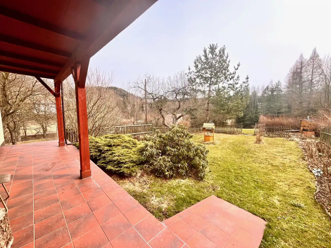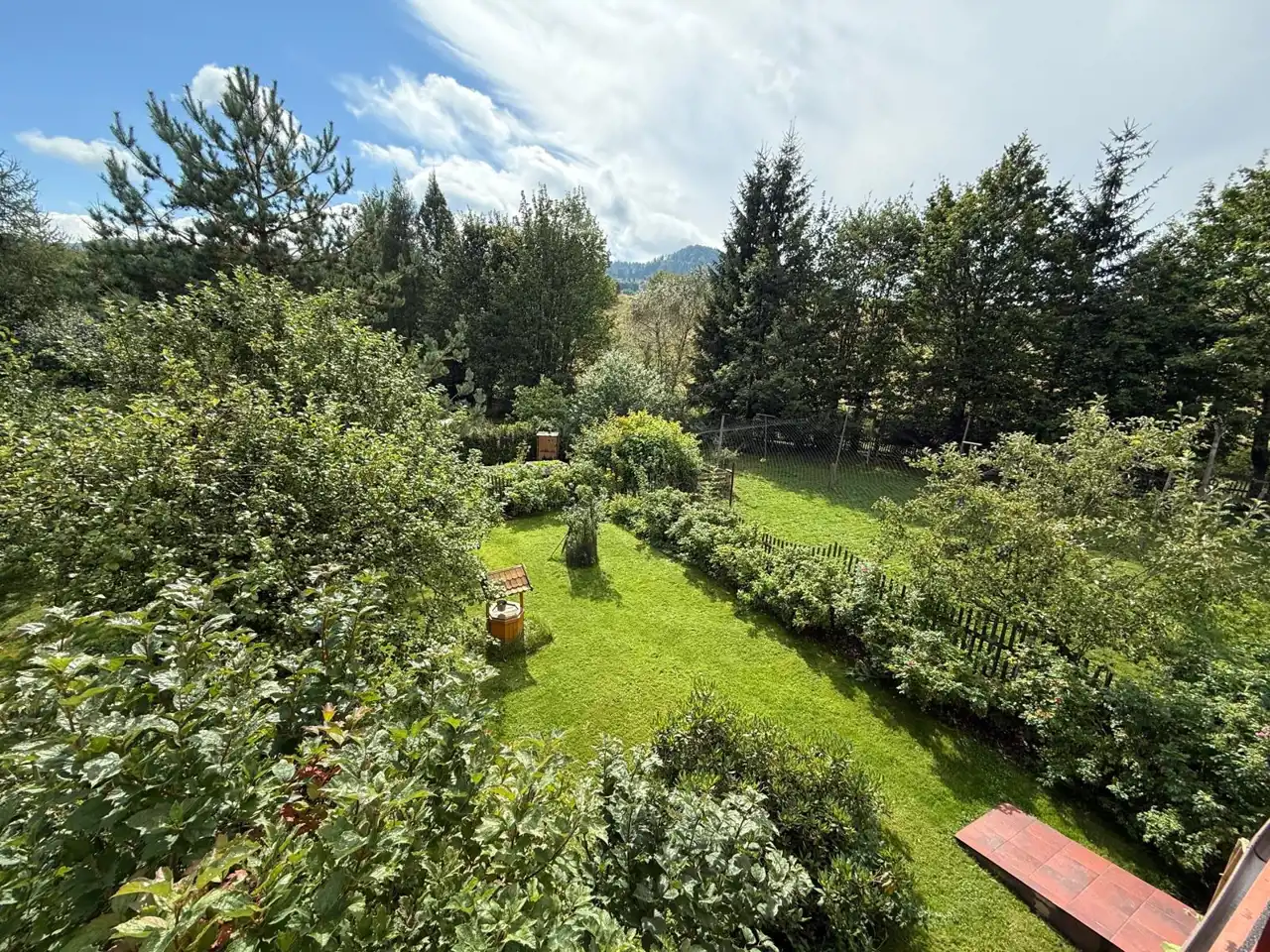 Wokół nieruchomości jest sporo wypielęgnowanej zieleni, efektownych nasadzeń oraz drobnej architektury ogrodowej, widok na góry, las, łąkę i pole. W tle daje się słyszeć szemrzącą rzeczkę.