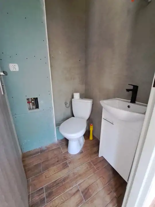- Poziom dolny: pokój z toaletą oraz bezpośrednim wyjściem na zewnątrz ( osobne wejście)