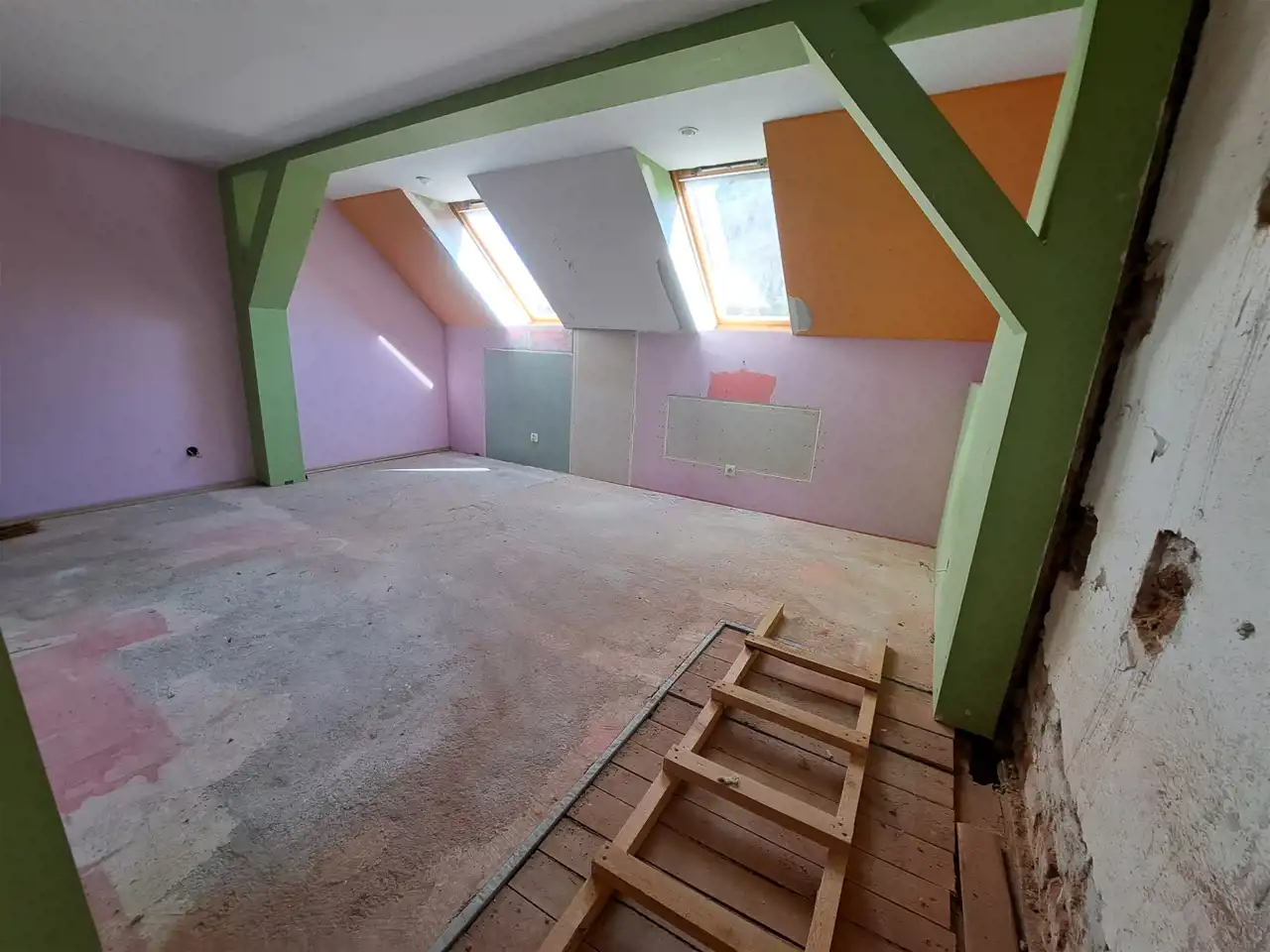 - Poziom górny: trzy pokoje , miejsce na łazienkę, przedpokój.