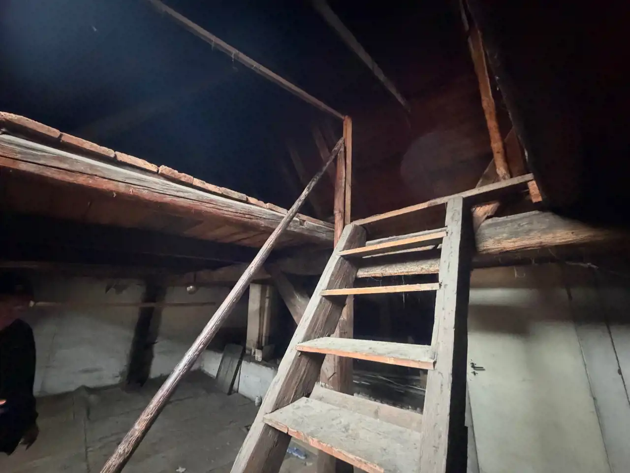 - Na strychu znajduje się duża, sucha przestrzeń z oknami nadająca się do zaadoptowania na pokój o wielkości około 30 - 40 m2