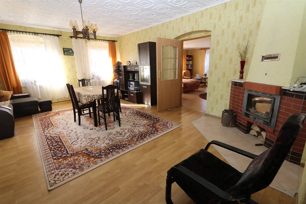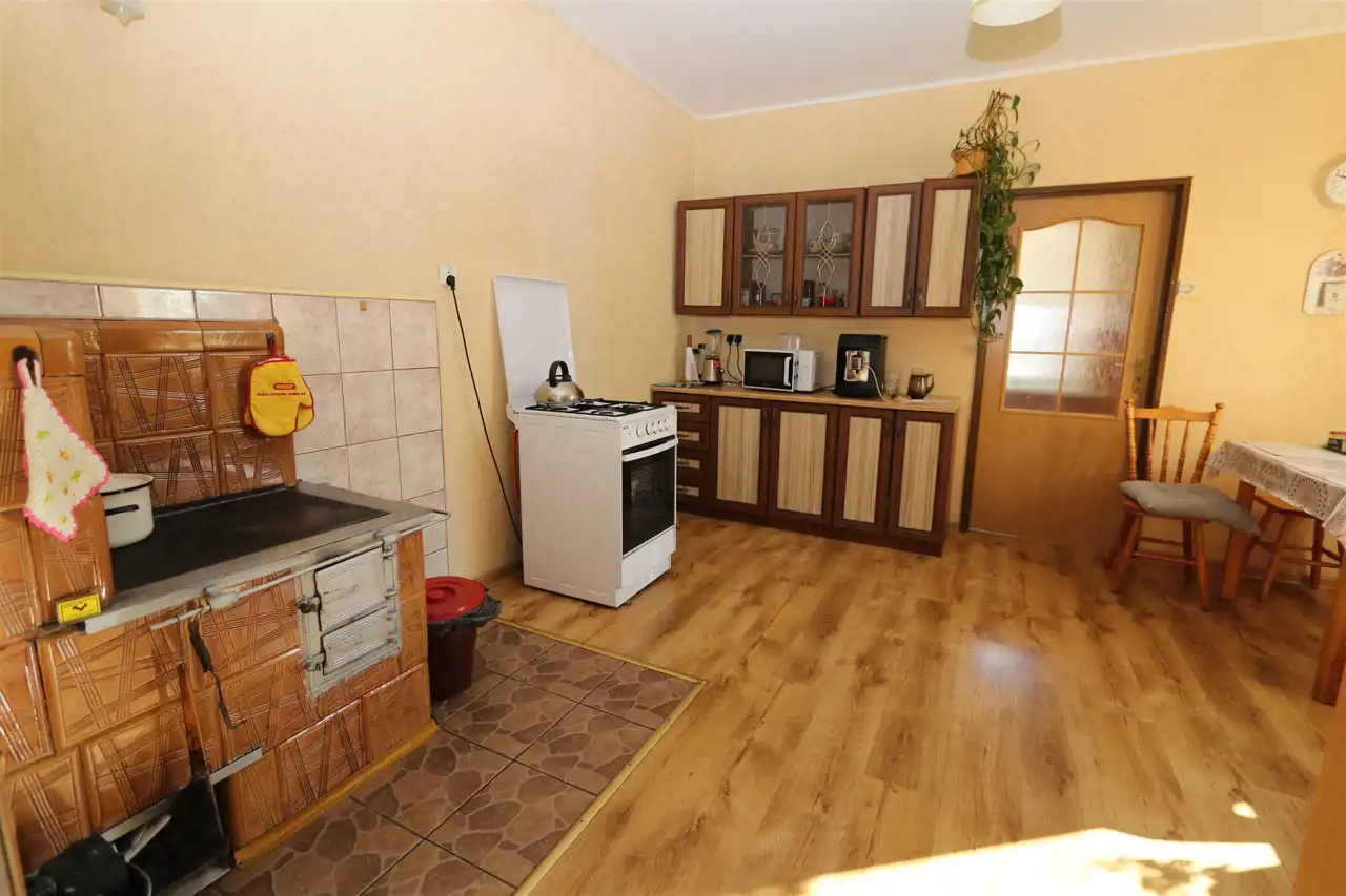 Ogrzewanie kominkowe oraz drugi kominek typu koza w drugim pokoju. Dodatkowo piec kaflowy w kuchni.