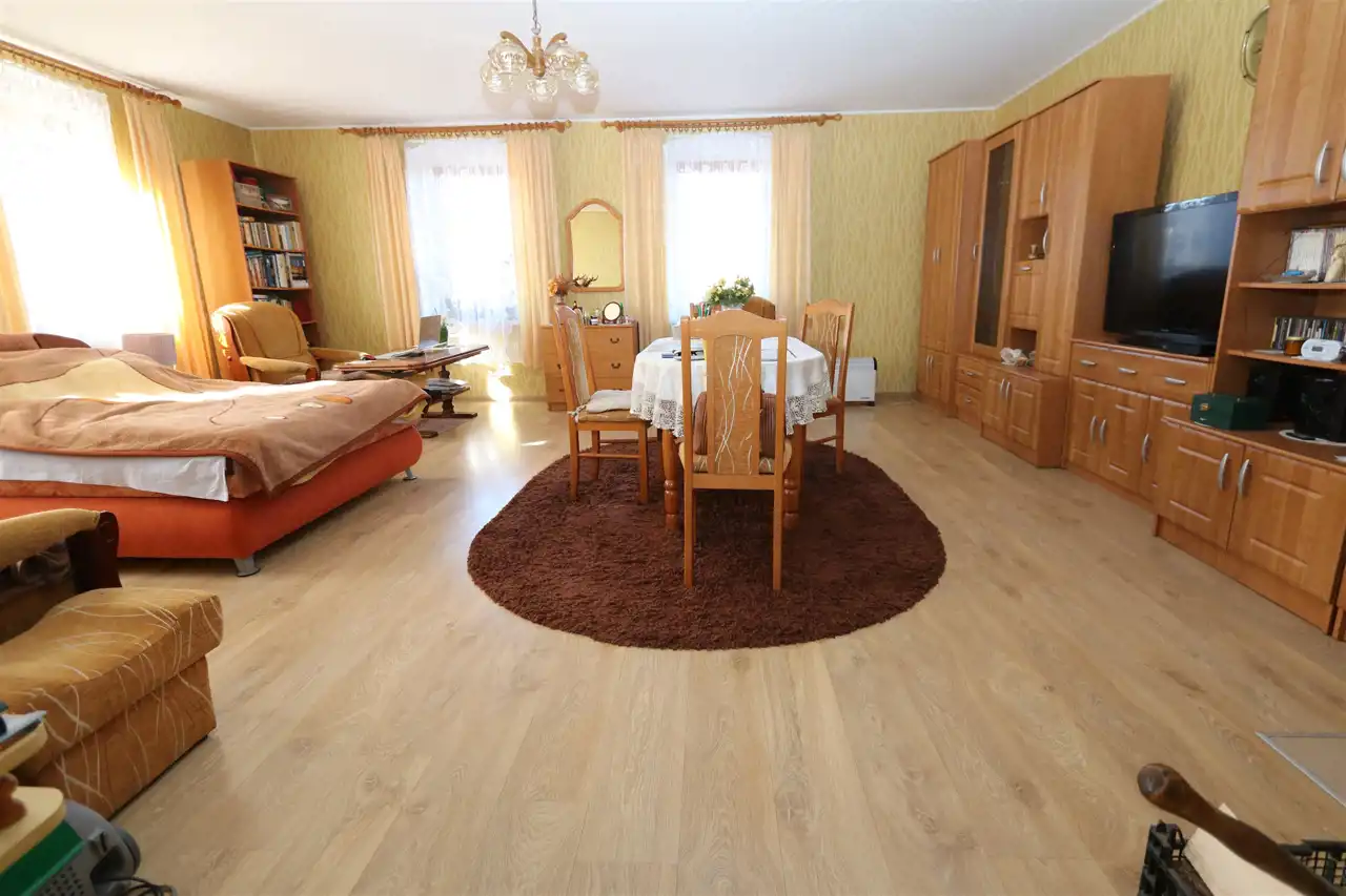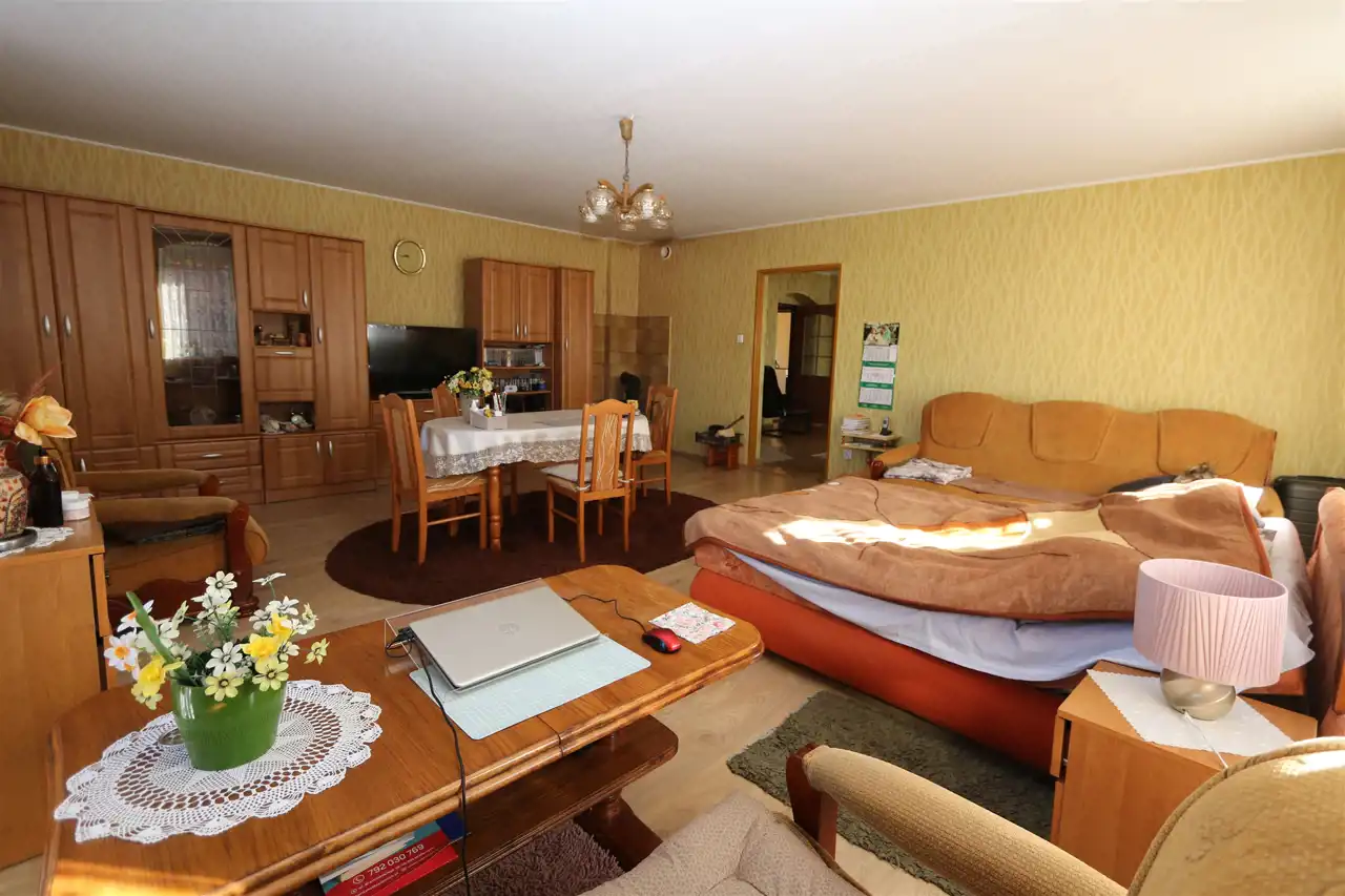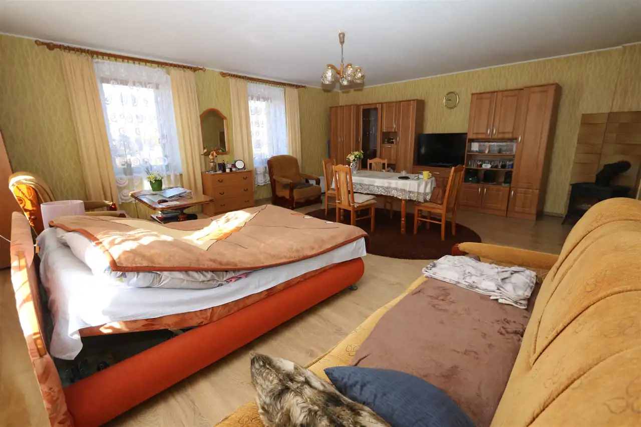- 2 dużych pokoi ( można przebudować na dodatkowy pokój lub dwa )