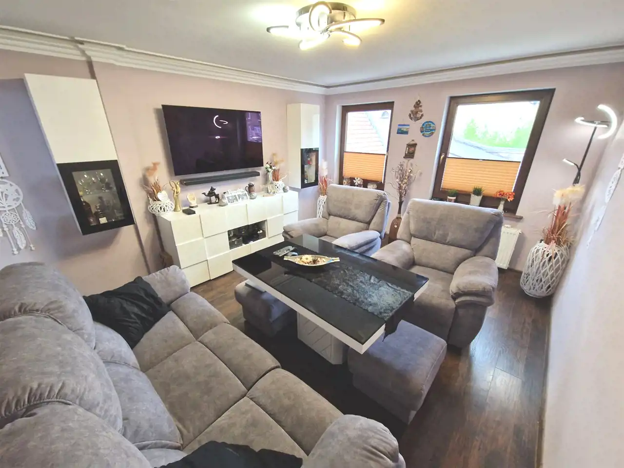 Wnętrze wykończone z dużą starannością, okna 3 szybowe brązowe, na podłogach panele, ściany pokryte gładzią i tynkiem mozaikowym "marmolit".
