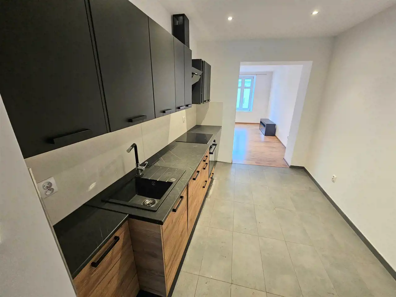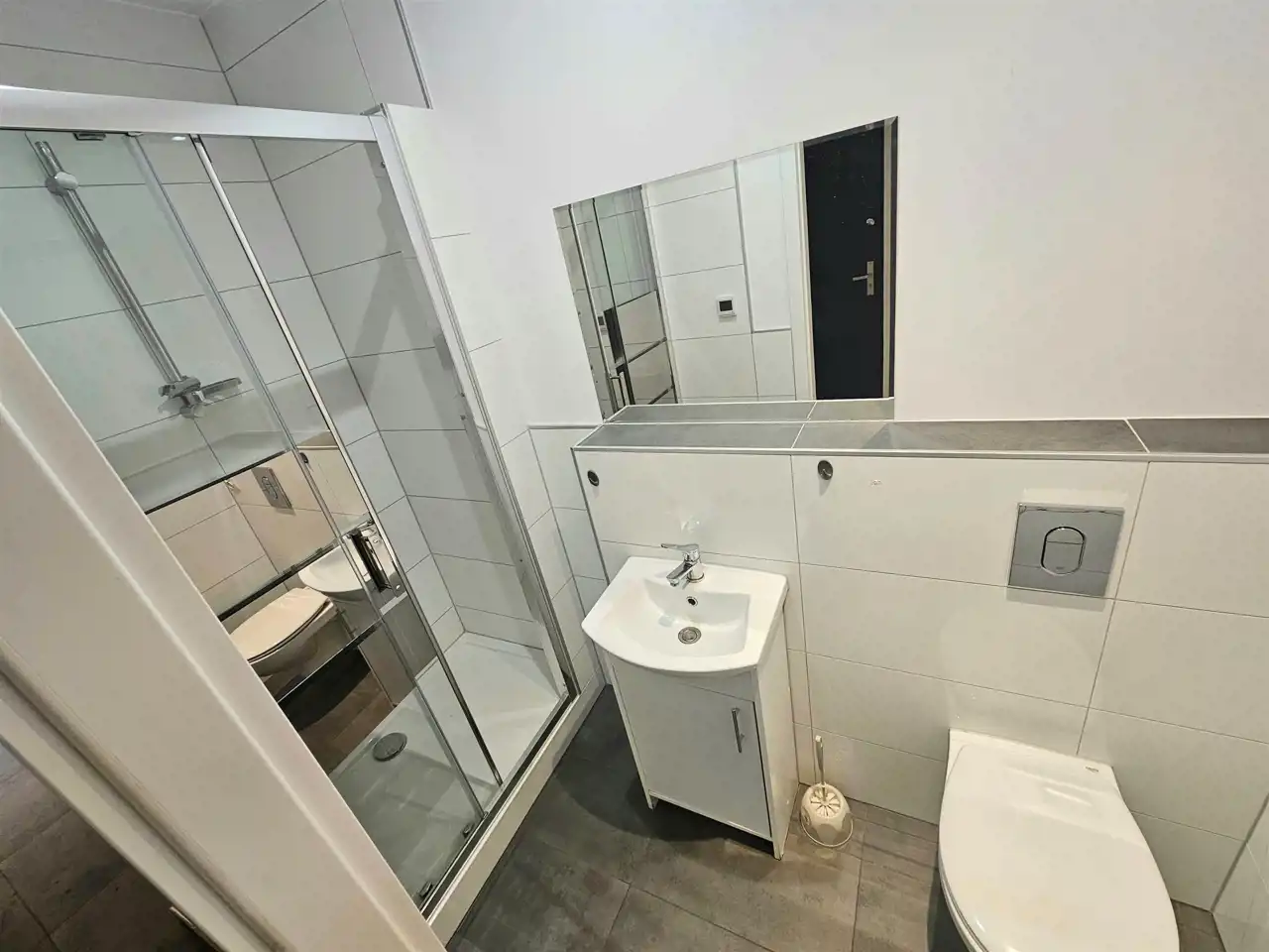 - Na podłogach panele oraz kafle