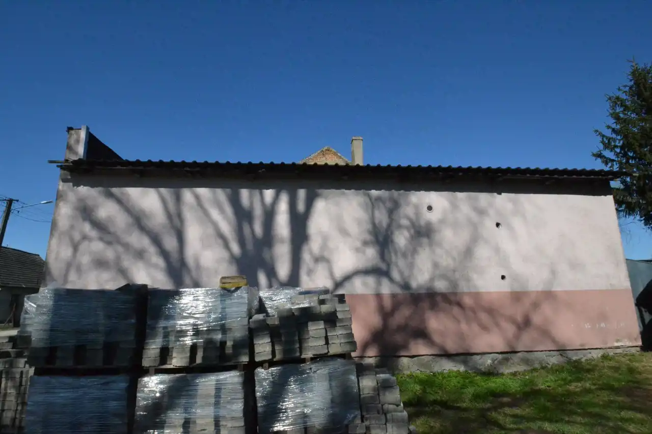 Budynek w zabudowie zwartej, murowany, ocieplony stryopianem, parterowy, okna PCV, dach pokrytych blachą