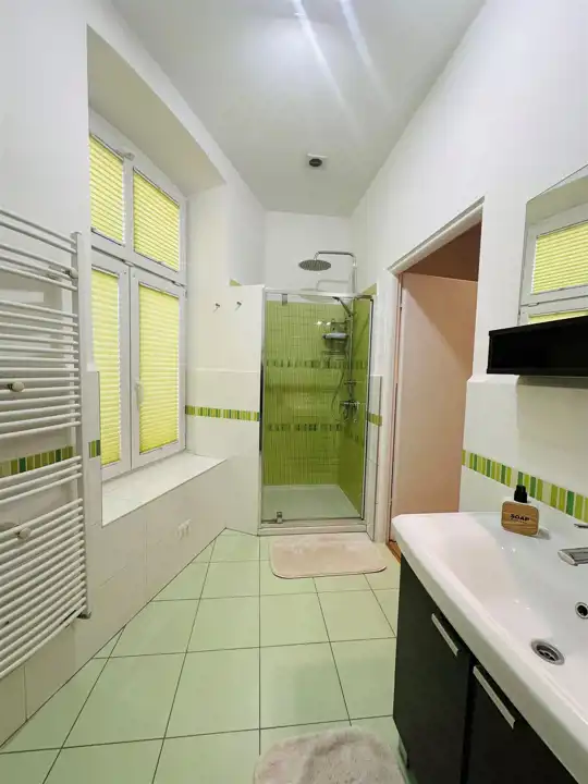 Kuchnia umeblowana i wyposażona. Mieszkanie przestronne, zadbane, wszystkie instalacje nowe, centralne ogrzewanie z pieca gazowego dwufunkcyjnego.