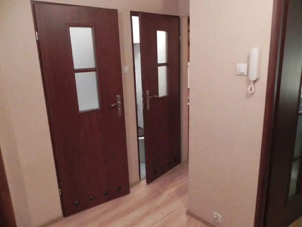 Mieszkanie składa się z trzech niezależnych pokoii w tym jeden z balkonem, oddzielnej kuchni (zabudowa mebli kuchennych, lodówka, pochłaniacz pary), łazienki i oddzielnego wc (wanna, pralka, glazura i terekota), przedpokoju (szafa), komórka lokatorska.