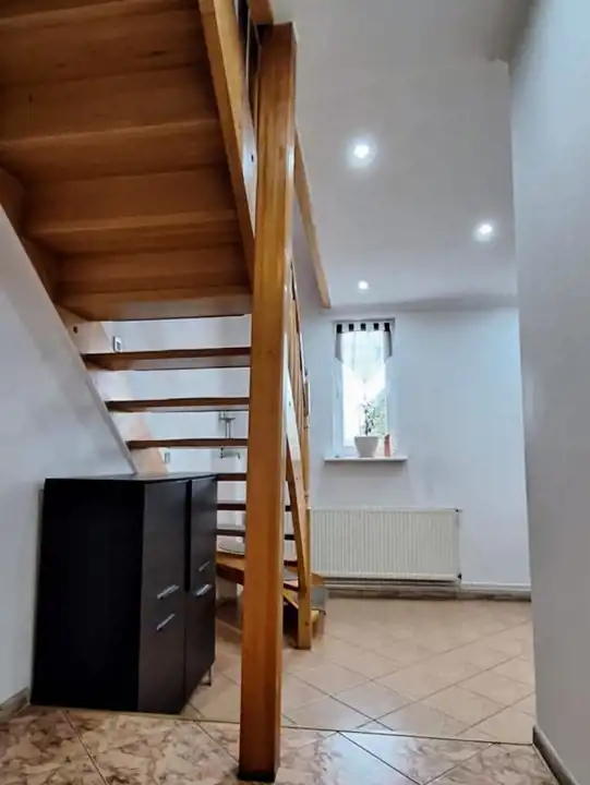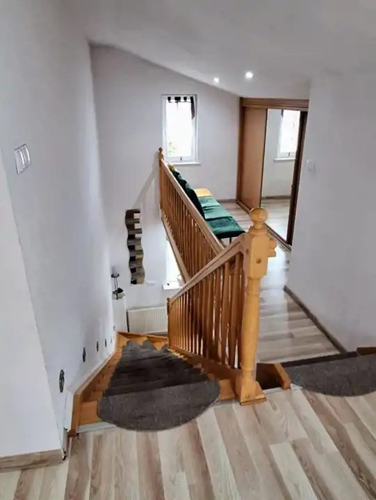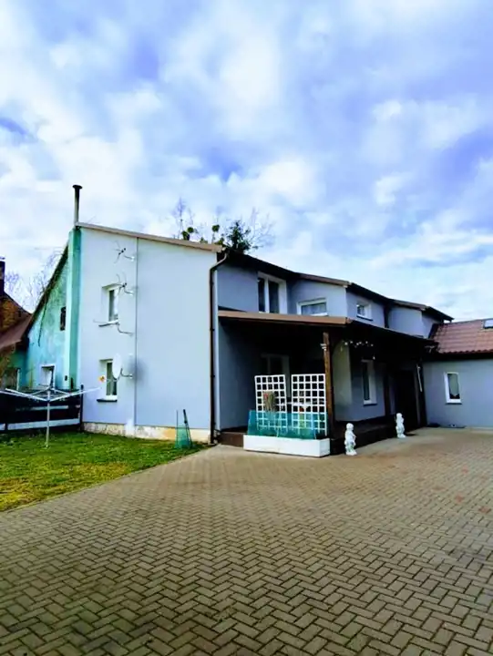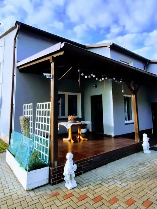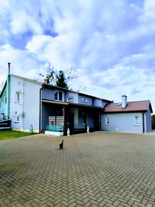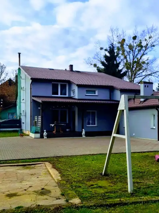 Na Sprzedaż piękny dom w zabudowie bliźniaczej o powierzchni 144m2. Dom bardzo schludny na maksa zadbany podobnie z reszta jak działka na której stoi dom (4054m2). Dom przeszedł generalny remont 10 lat w którym był robiony dach wymienione okna na pcv 3 szybowe oraz dom został rozbudowany i powiększony. Dom został rozbudowany z myślą o dużej rodzinie dlatego tez na dole znajdziemy spory salon łazienką kuchnie i pomieszczenia gospodarcze z kolei na górze znajdują się 4 fajne sypialnie łazienka i spora garderoba . Dodatkowym bonusem jest pokoik zrobiony na poddaszu. Działka wypieszczona przez właścicieli z placem zabaw dla dzieci w całości ogrodzona z brama na pilota. Na działce znajduje się drugi budynek (176m2) który idealnie nada się na warsztat samochodowy bądź stolarnie lub po prostu garaż na kilka samochodów. Zimą dom można ogrzać piecem gazowym lub tak zwanym kopciuchem na węgiel i drewno. Dom w pełni umeblowany bez konieczności jakichkolwiek remontów.