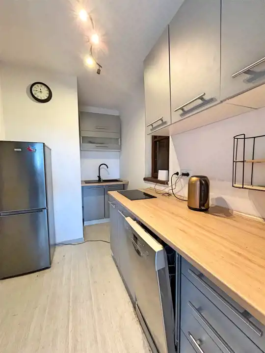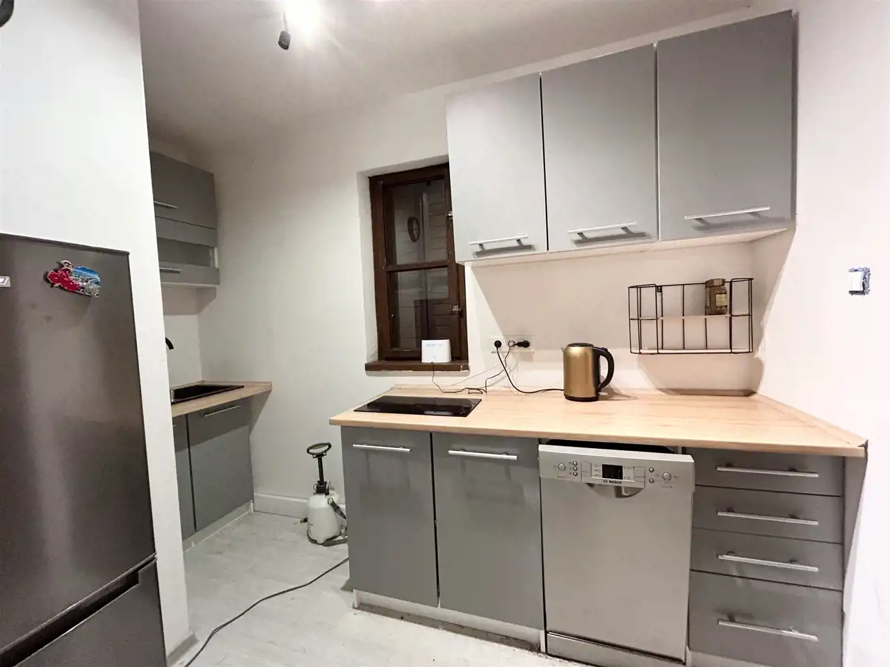 - Układ pomieszczeń: dwa pokoje, aneks kuchenny, łazienka z WC.