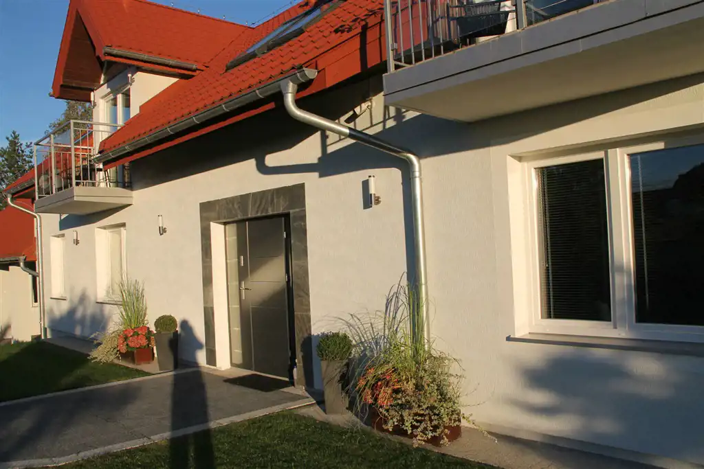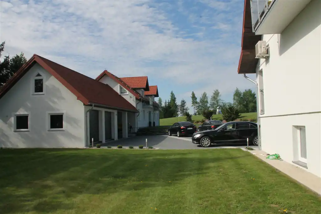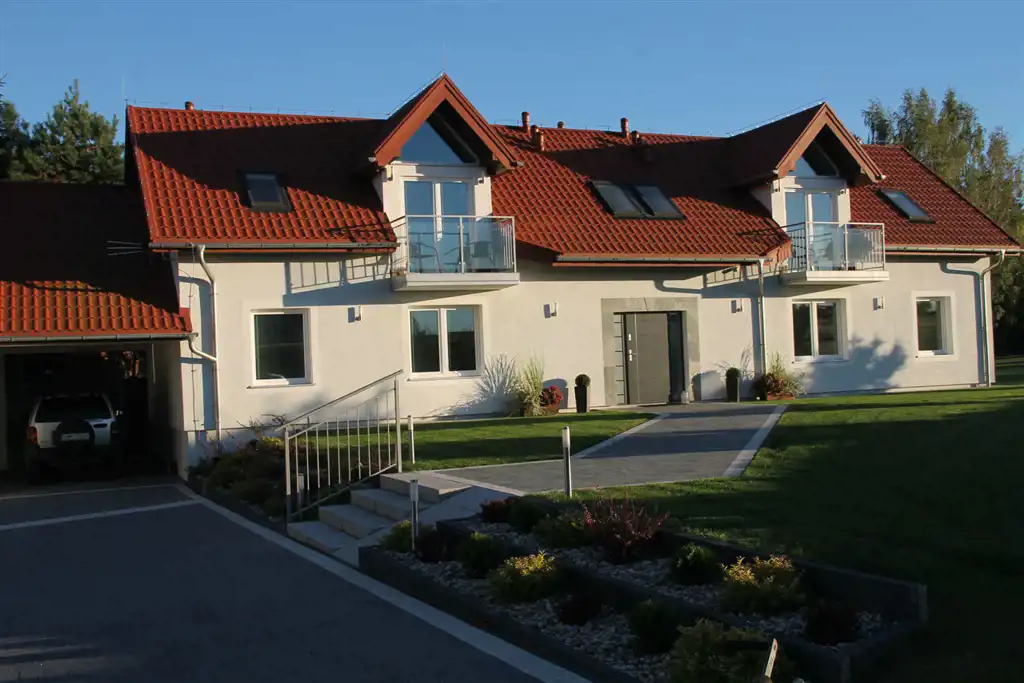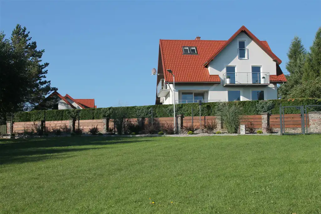 Na działce znajdują się dwa jednopiętrowe, starannie wykończone budynki mieszkalne o powierzchniach 340 m2 i 240 m2, oraz budynek garażowy, parterowy o pow. 120 m2, o architekturze doskonale korespondującej z otaczającą je wspaniałą mazurską przyrodą.