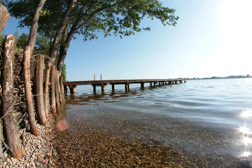 Działka z własną linią brzegową, kąpieliskiem i nowym pomostem. Teren ogodzony.