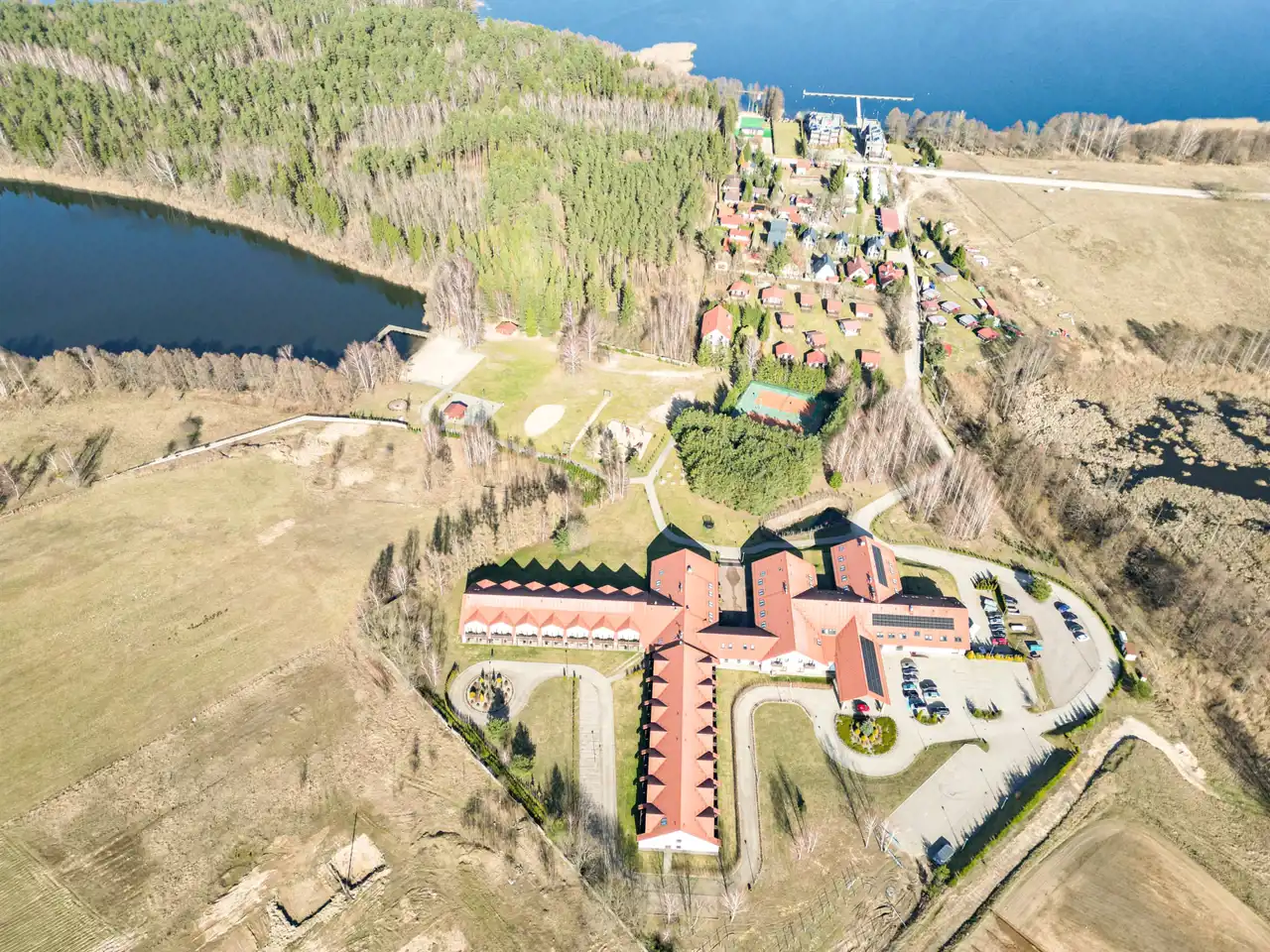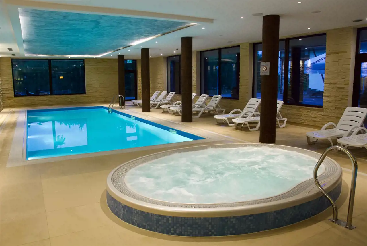 Hotel wybudowany w 2014 roku posiada 145 pokoi, własny dostęp do jeziora z piękną plażą, z kortami tenisowymi, boiskiem do siatkówki, z własnym basenem i centrum Spa.