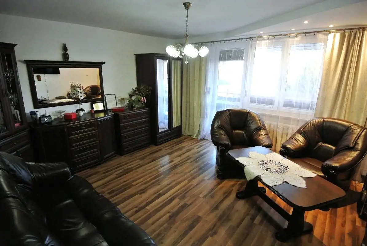 Mieszkanie zlokalizowane na 3 piętrze w 3-piętrowym budynku z 1979 roku, umeblowane i wyposażone. Pomieszczenia: salon z wyjściem na balkon, kuchnia, dwa pokoje, łazienka z prysznicem, WC, przedpokój.
