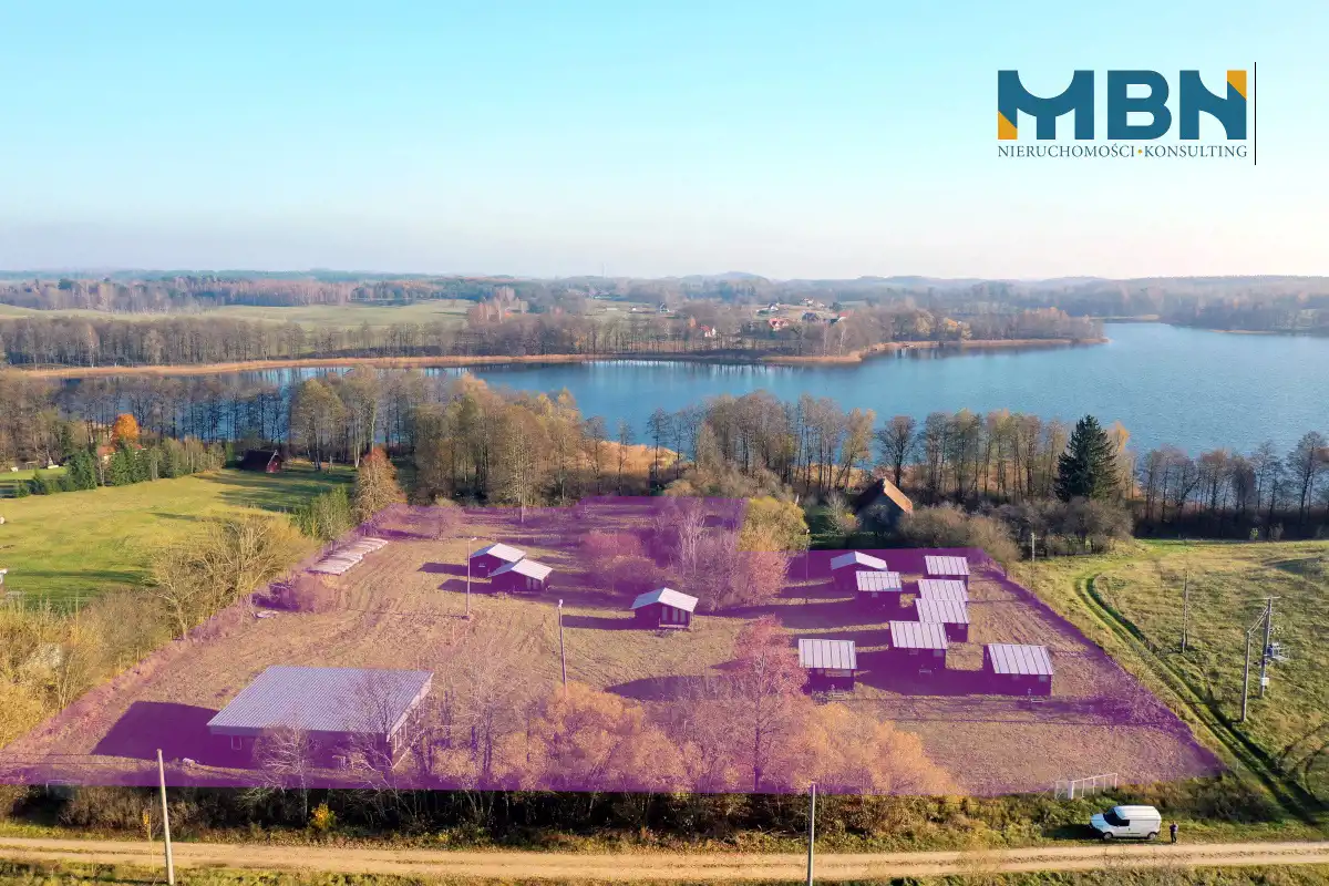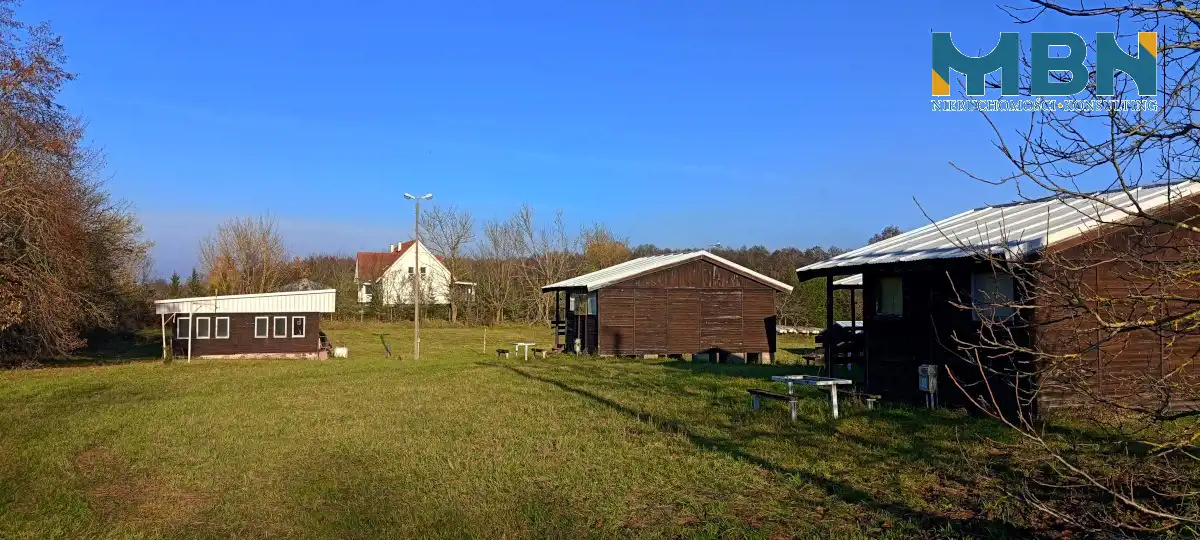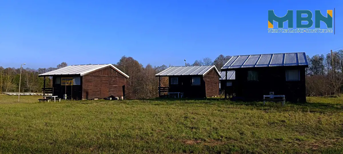 Przedmiotem sprzedaży jest zabudowana 11 budynkami kempingowymi (o pow. 34m2 każdy - 372m2 pow. użytkowa łączna) oraz podpiwniczonym budynkiem świetlicowym o pow. ok. 100m2 (podpiwniczony) działka gruntu o nr geod. 74/11 o powierzchni 11200m2 – Nieruchomość w użytkowaniu wieczystym do 2089-12-05.