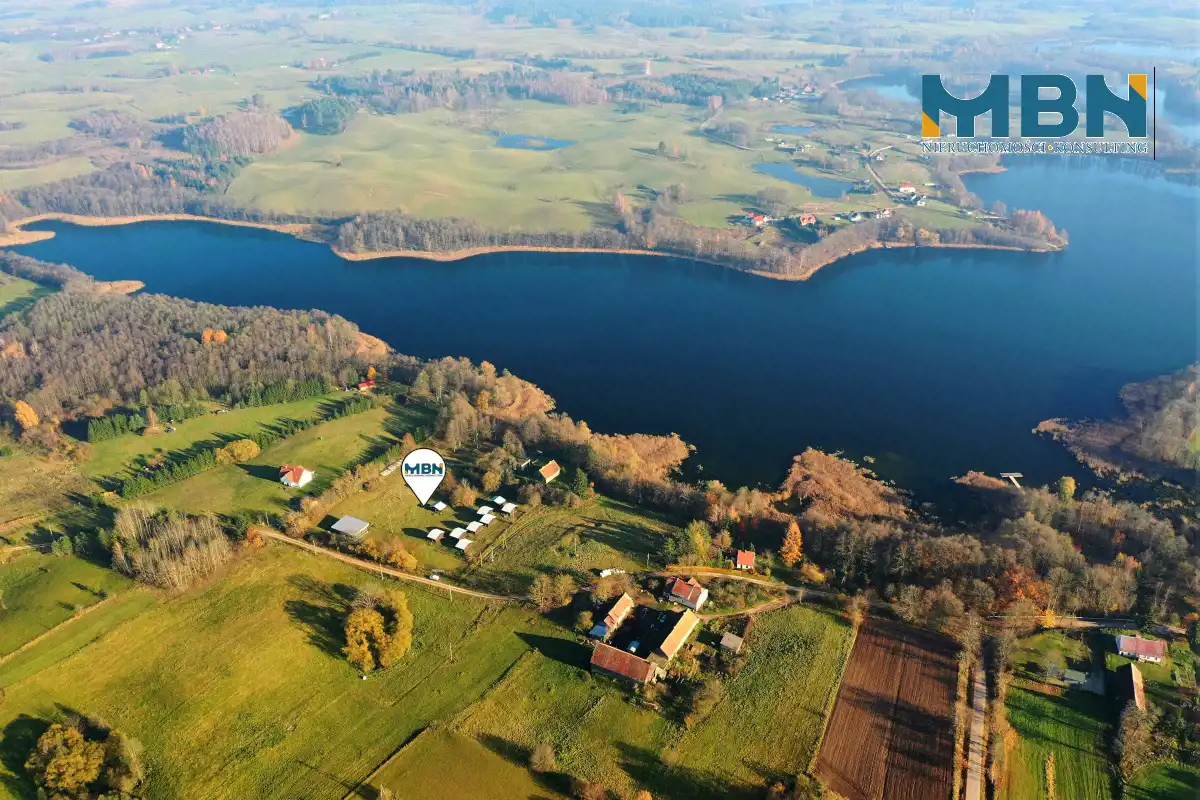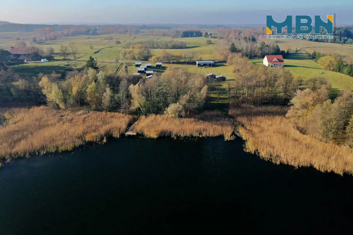 Zabudowana działka o pow. 1,1200ha z linią brzegową jeziora Bielewo