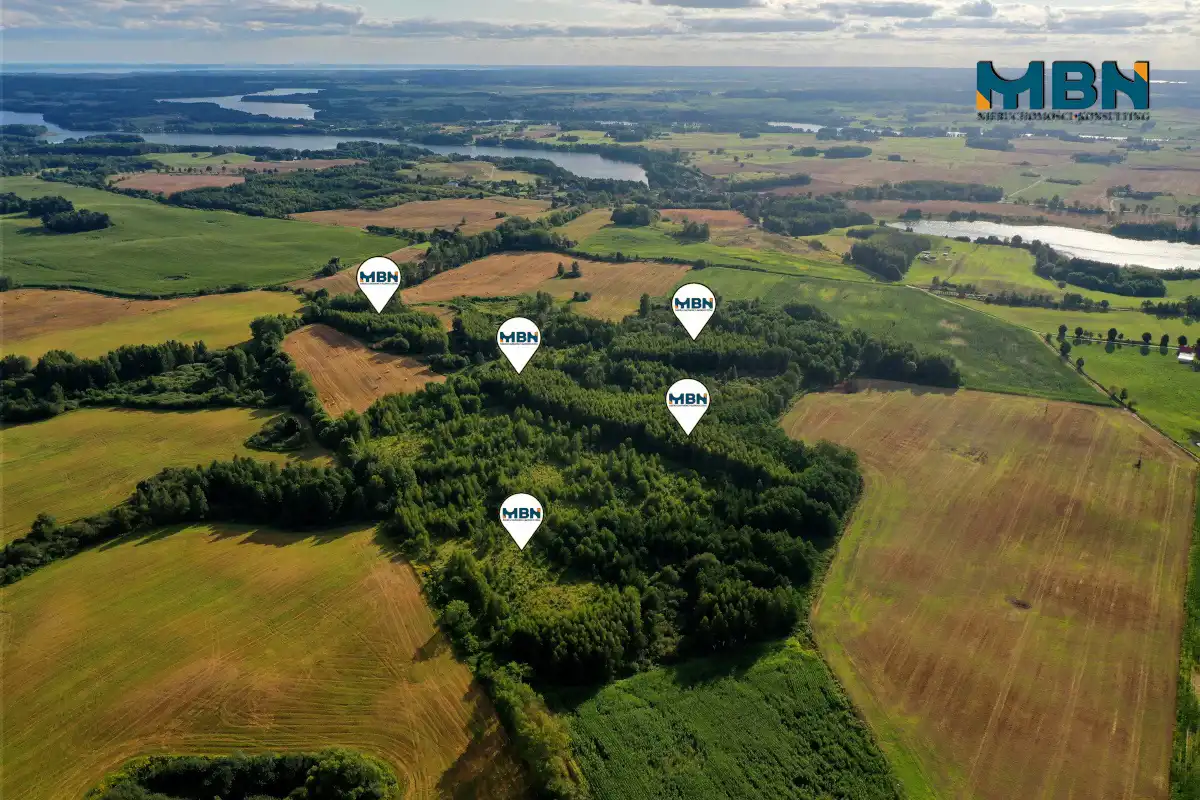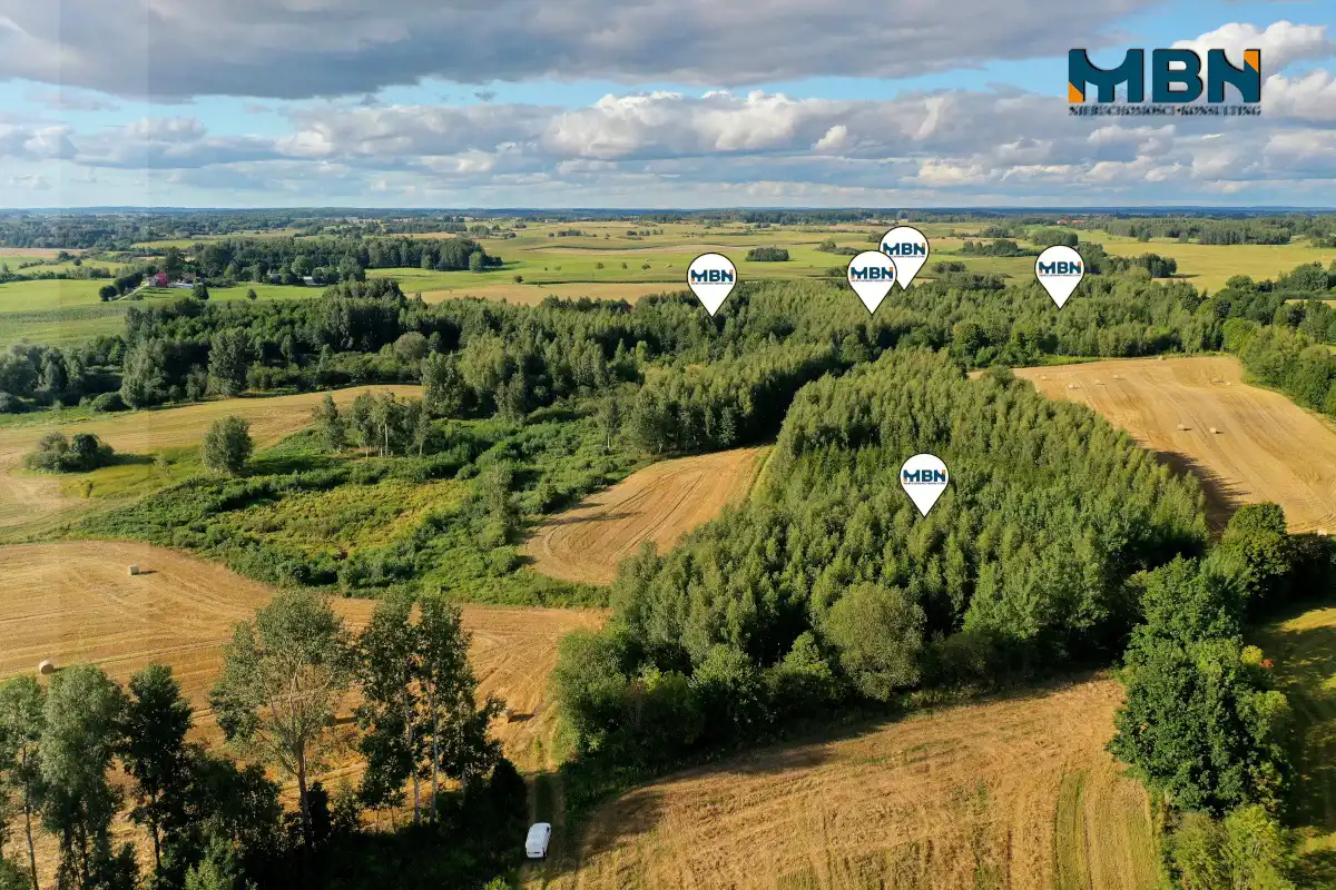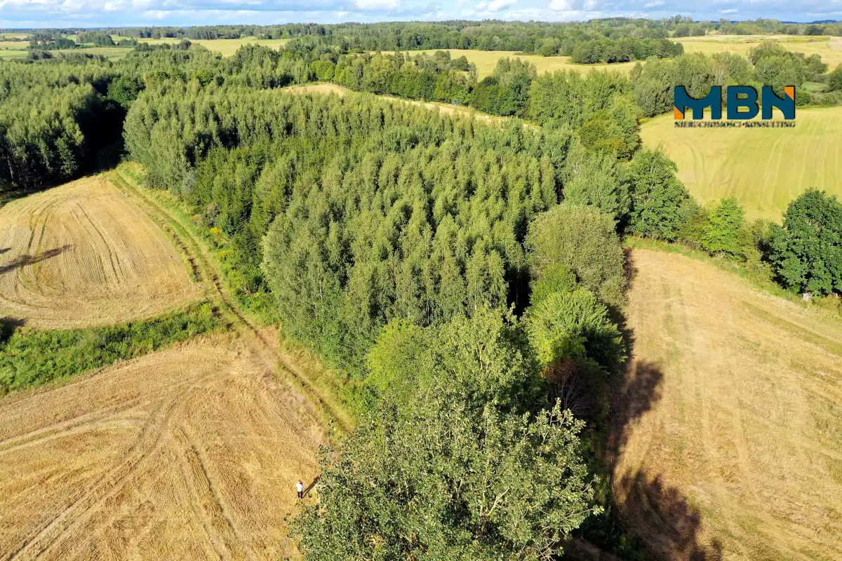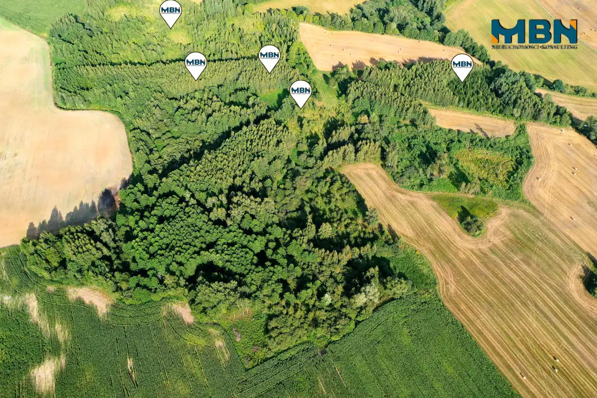 Przedmiotem sprzedaży jest nieruchomość zalesiona składająca się z 5 działek geodezyjnych . Nieruchomość położona na uboczu wsi. Teren kiedyś stanowił siedlisko z gruntami rolnymi jednak został prawie w całości zalesiony.