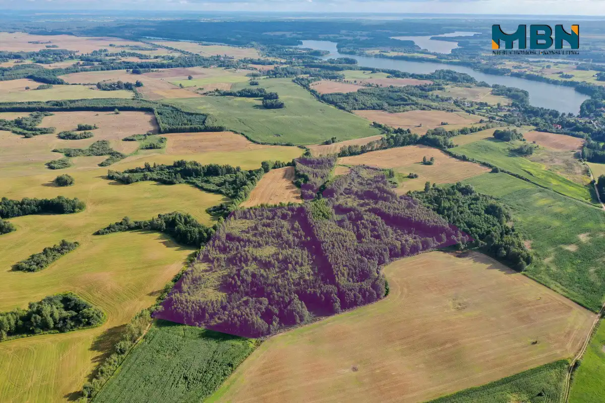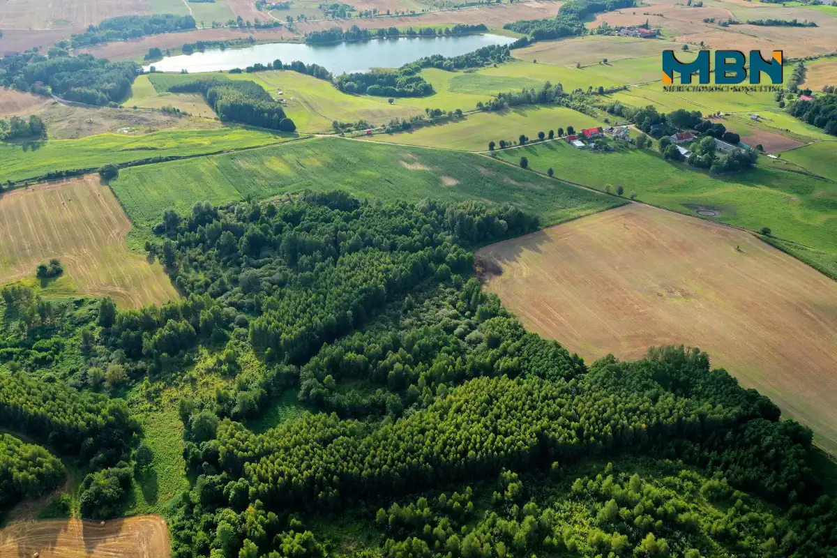- Działka zalesiona, nieregularny