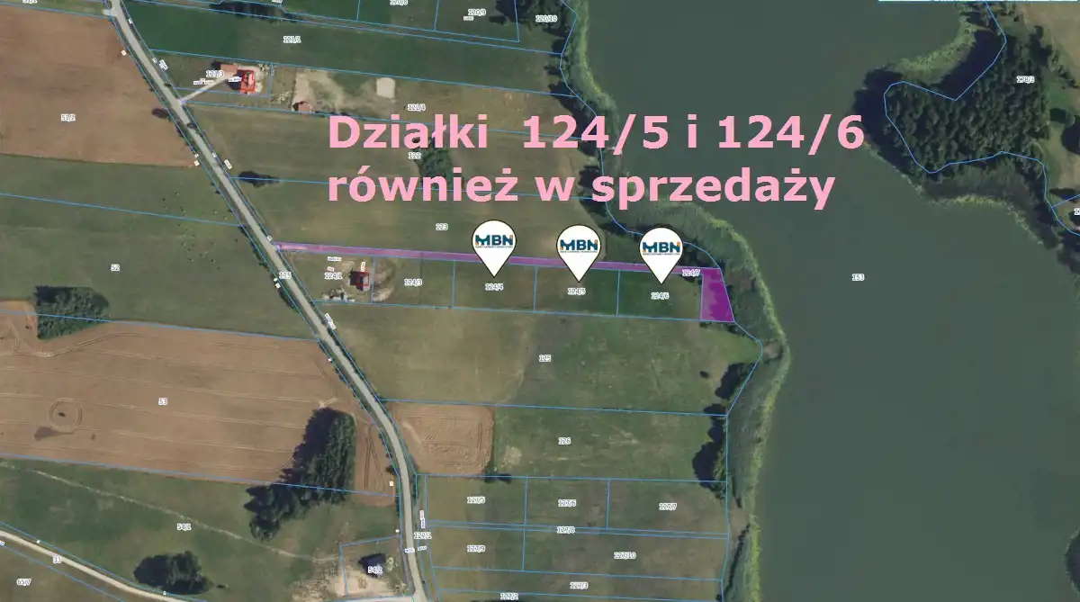 Działka drogi dojazdowej (o nr geod. 124/7) w której nabywamy udział (1/5) – pow. 3331m2 (działka stanowiąca drogę oraz w końcowej części plażę z łagodnym zejściem do jeziora);