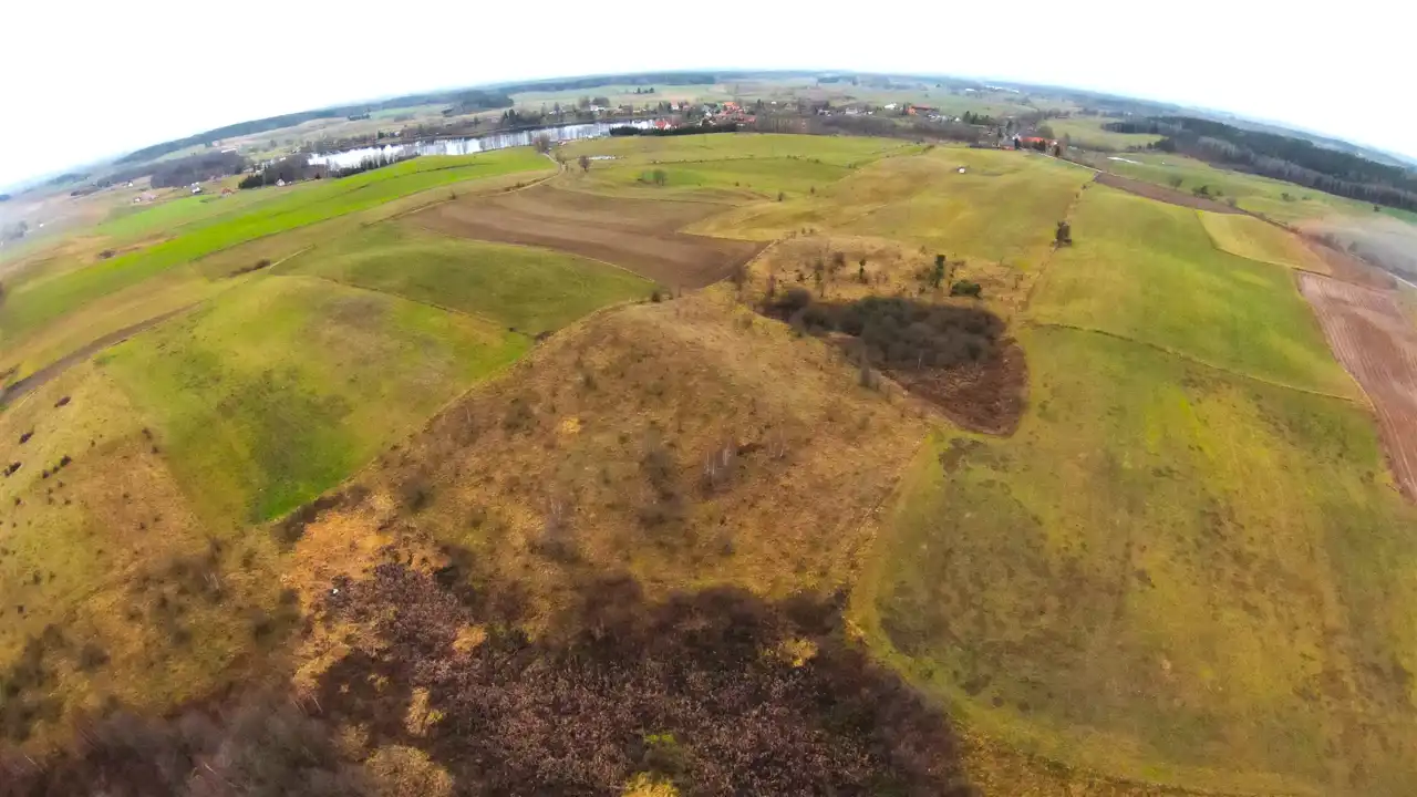 Kształt działki prostokąt, pofałdowana rzeźba terenu.