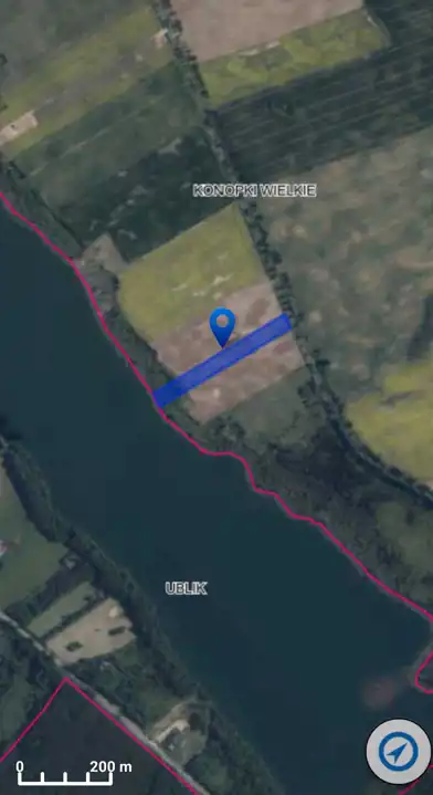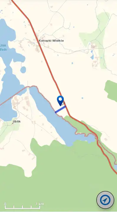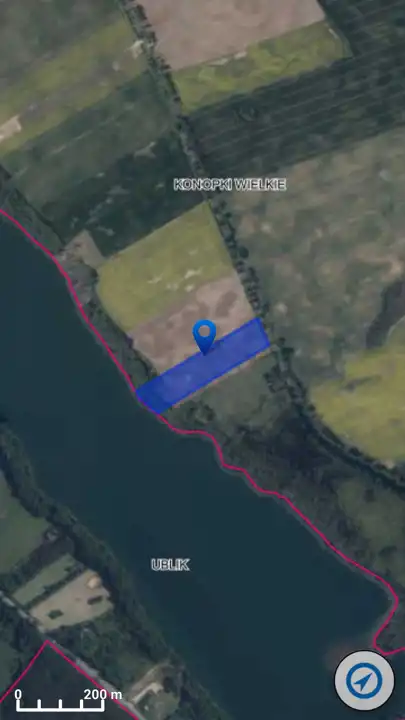 Działki przy linii brzegowej nad jeziorem Ublik w miejscowości Konopki Wielkie, w powiecie giżyckim, w gminie Miłki.