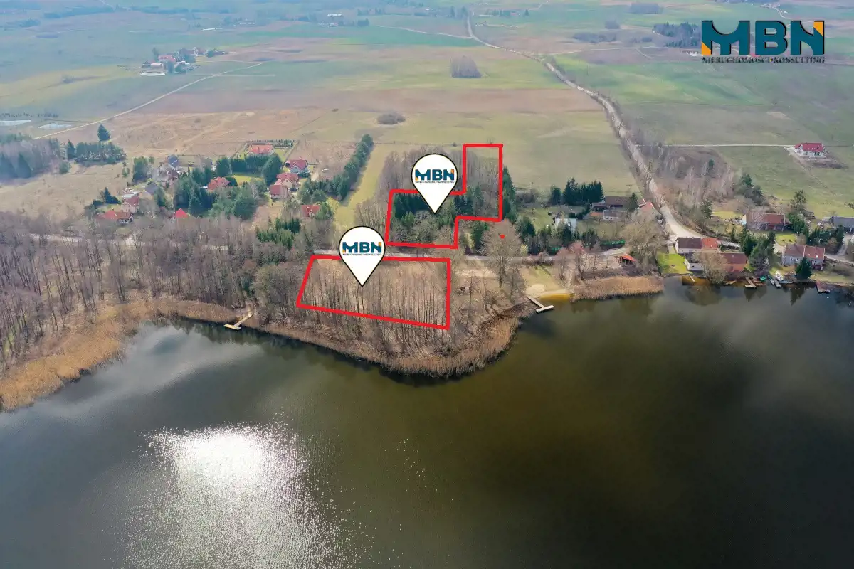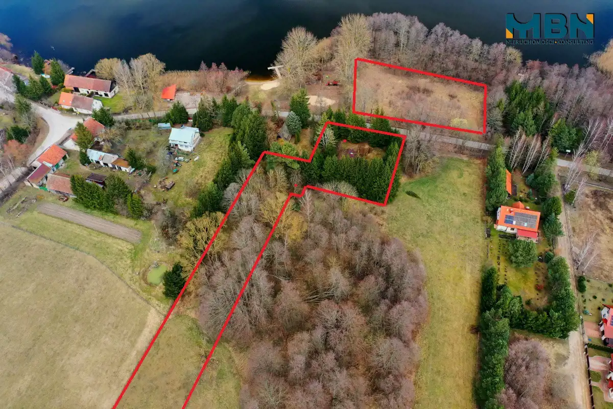 pierwsza z domem mieszkalnym na areale około 6700 m2, (do jeziora około 100m w linii prostej),
