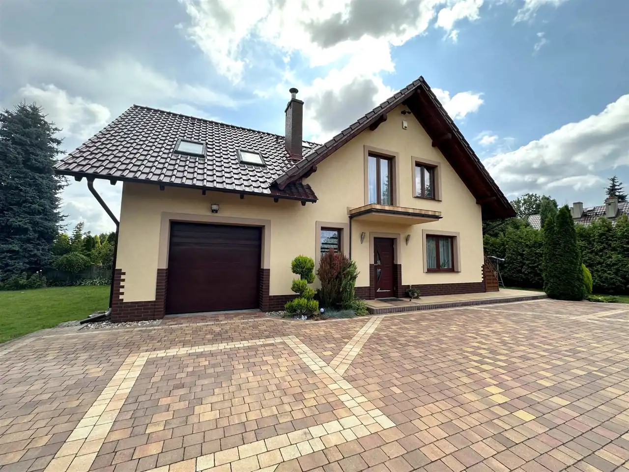 Duży podjazd wyłożony kostką brukową