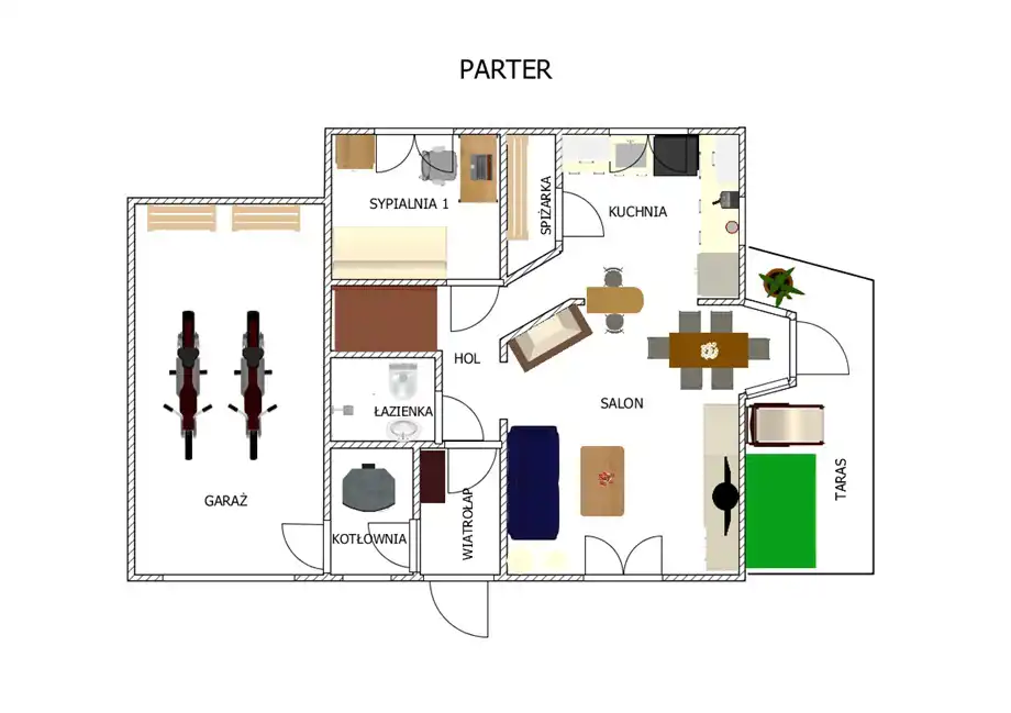 Dodatkowo garaż (w bryle budynku).